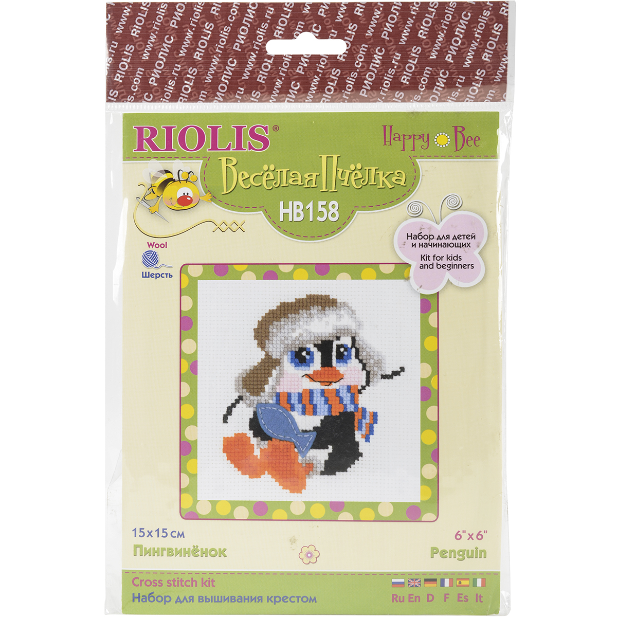 RIOLIS-Counted Cross Stitch Kit. Express your love for arts and crafts with these beautiful cross stitch kits! Find a themed kit for any taste! This package contains 10 count Zweigart Aida fabric, woolen and acrylic yarn (10 colors), felt and one needle. Design: Penguin. Finished size: 6x6 inches. Imported.