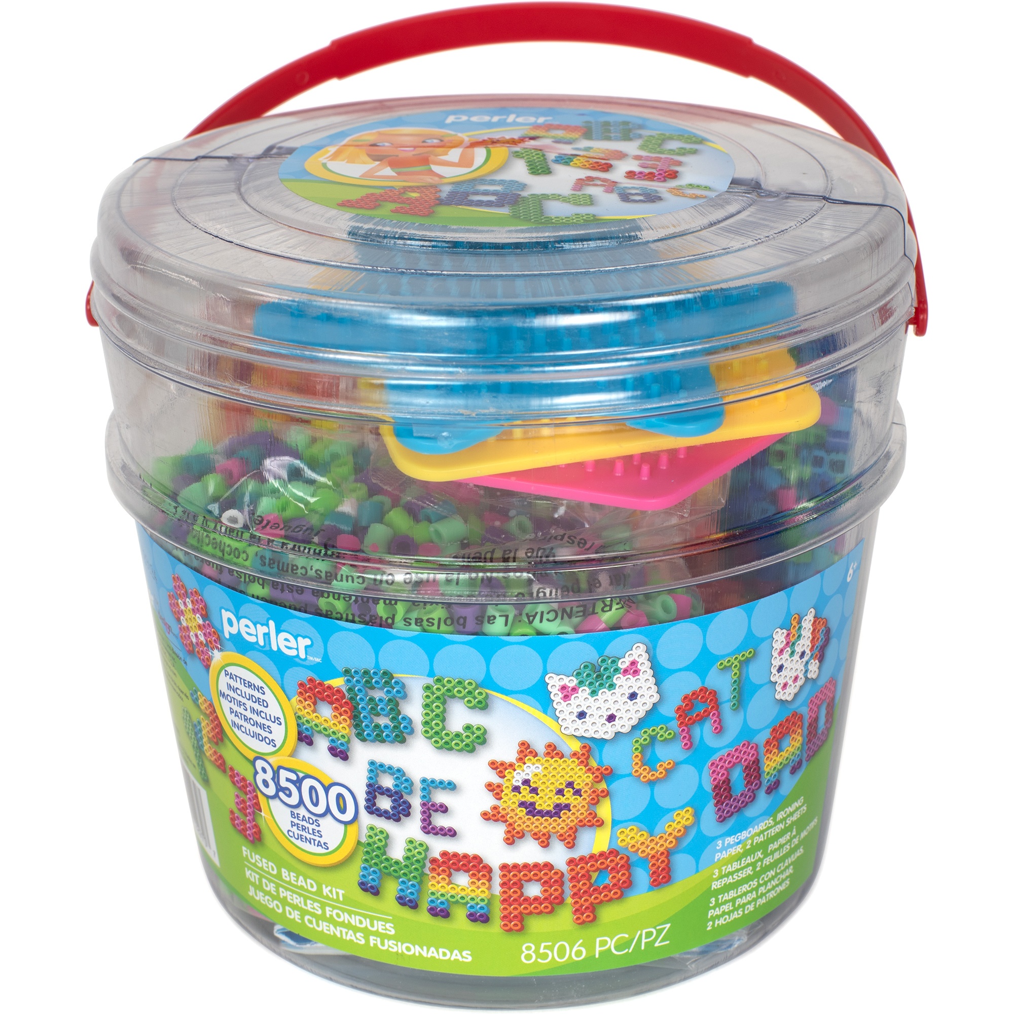 This Alphabet Activity Bucket from Perler will provide hours of fuse bead fun. Create colorful words, phrases, and motifs with the 8500 beads included in the kit. Follow the designs on the included pattern sheets or let your imagination run wild and create anything you want! Perfect for parties or playdates. Pegboards and ironing paper are reusable. For ages 6 and up. This 5.6x5.9x6.2 inch package contains 8500 beads, 3 pegboards (small square, small star, and small hexagon), 2 pattern sheets with instructions, and ironing paper. Imported.