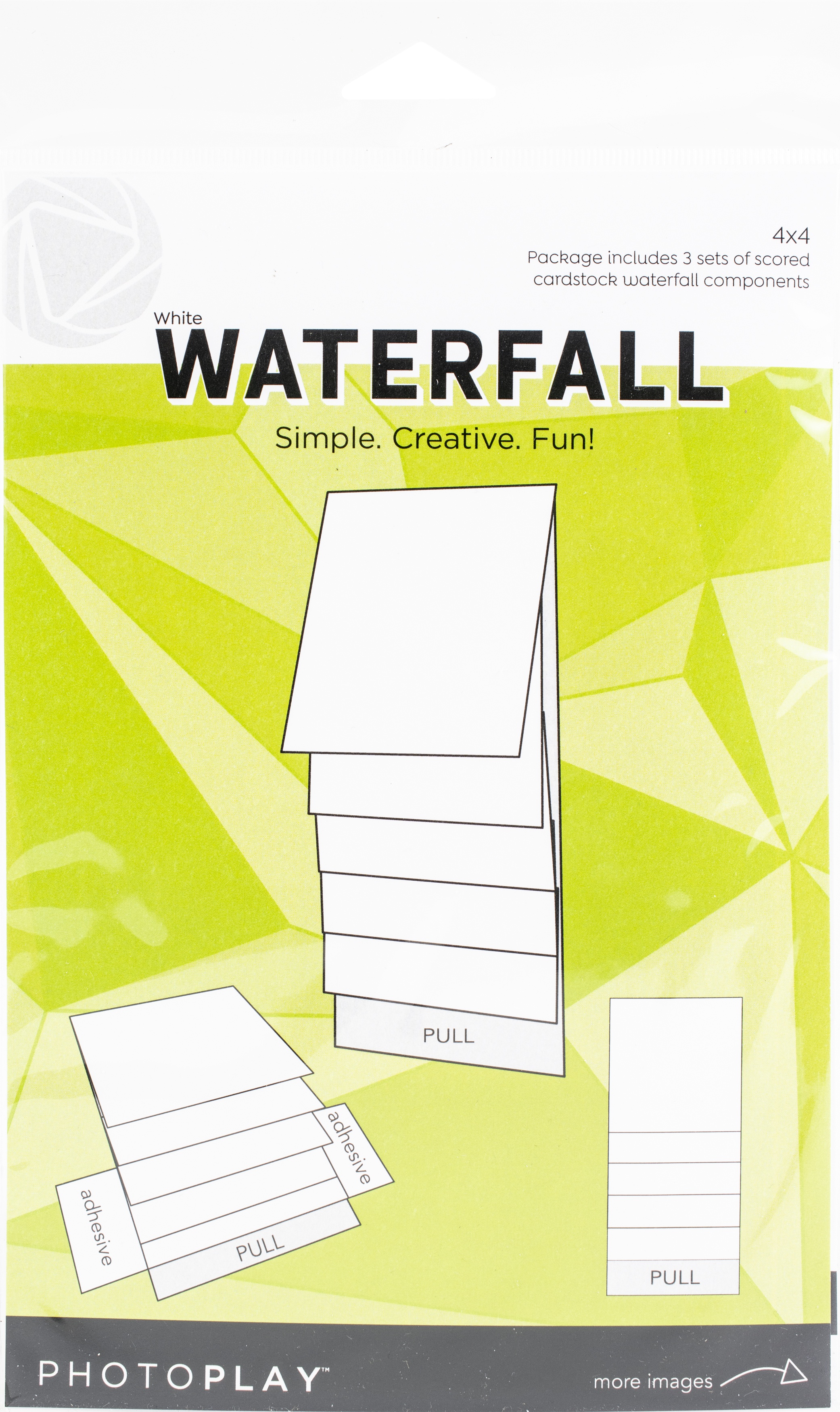 Simple. Creative. Fun! Create wonderful waterfall cards for your friends and family! This package contains three sets of scored cardstock waterfall components. Size: 4x4 inches. WARNING: Choking Hazard- small parts. Not for children under 3 years. Made in USA.