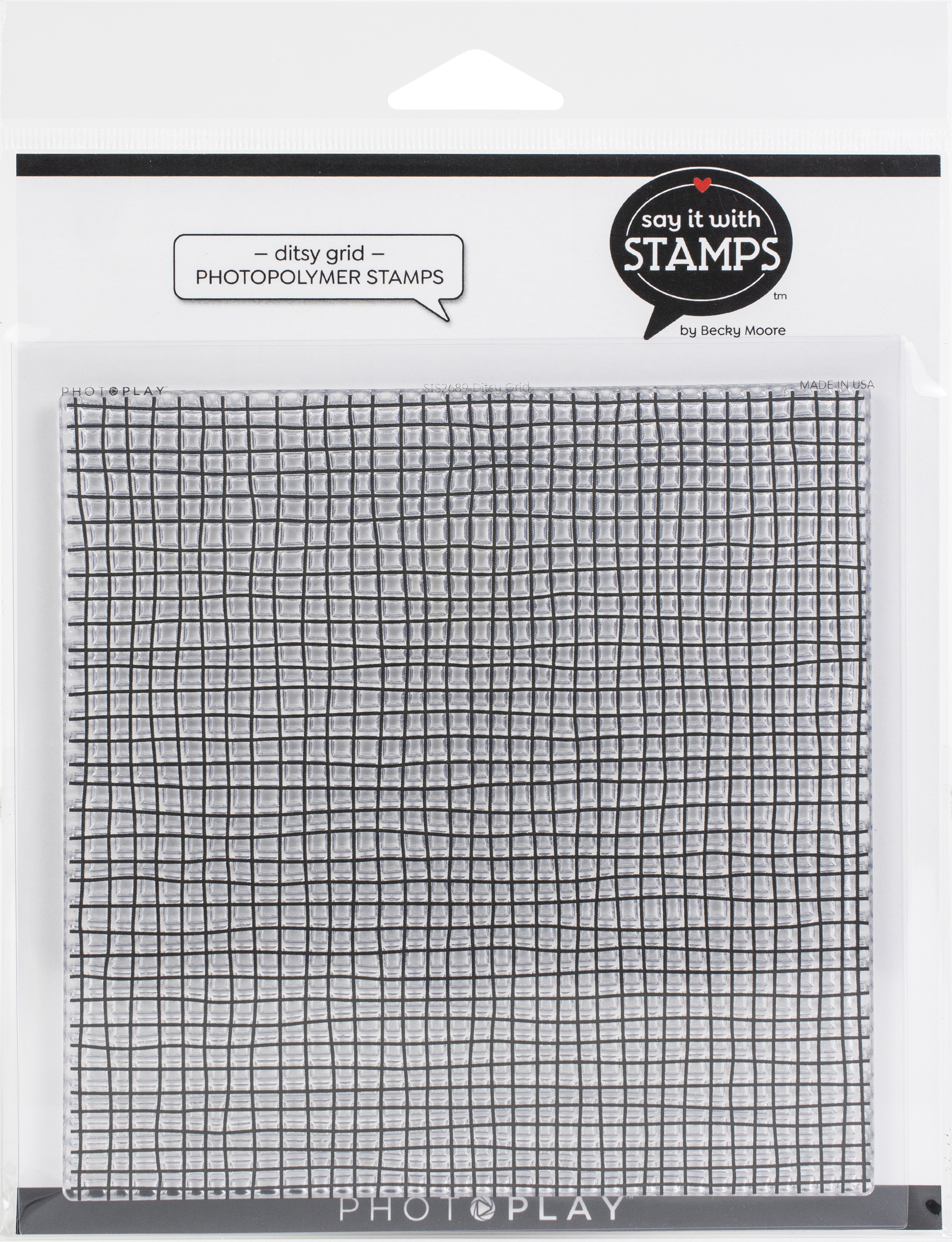 Use these backgrounds to add depth to greeting cards, scrapbook pages, mixed media and more with PhotoPlay Polymer Clear Stamps. Easily attach stamps to a clear acrylic stamp block and stamp away! Package contains Ditsy Grid Background Photopolymer Clear Stamp. Made in the USA.