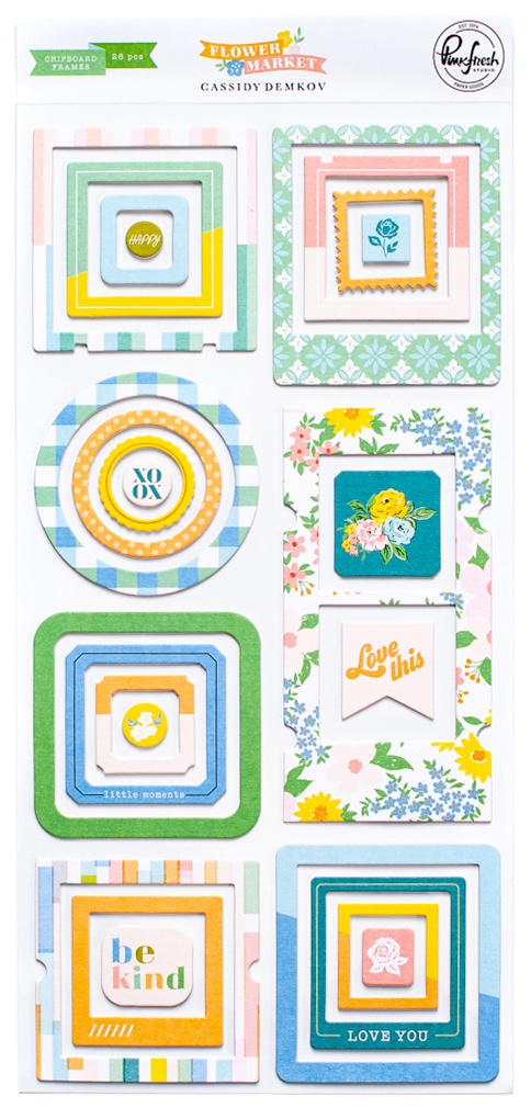 PinkFresh Chipboard Frames Stickers-Flower Market
