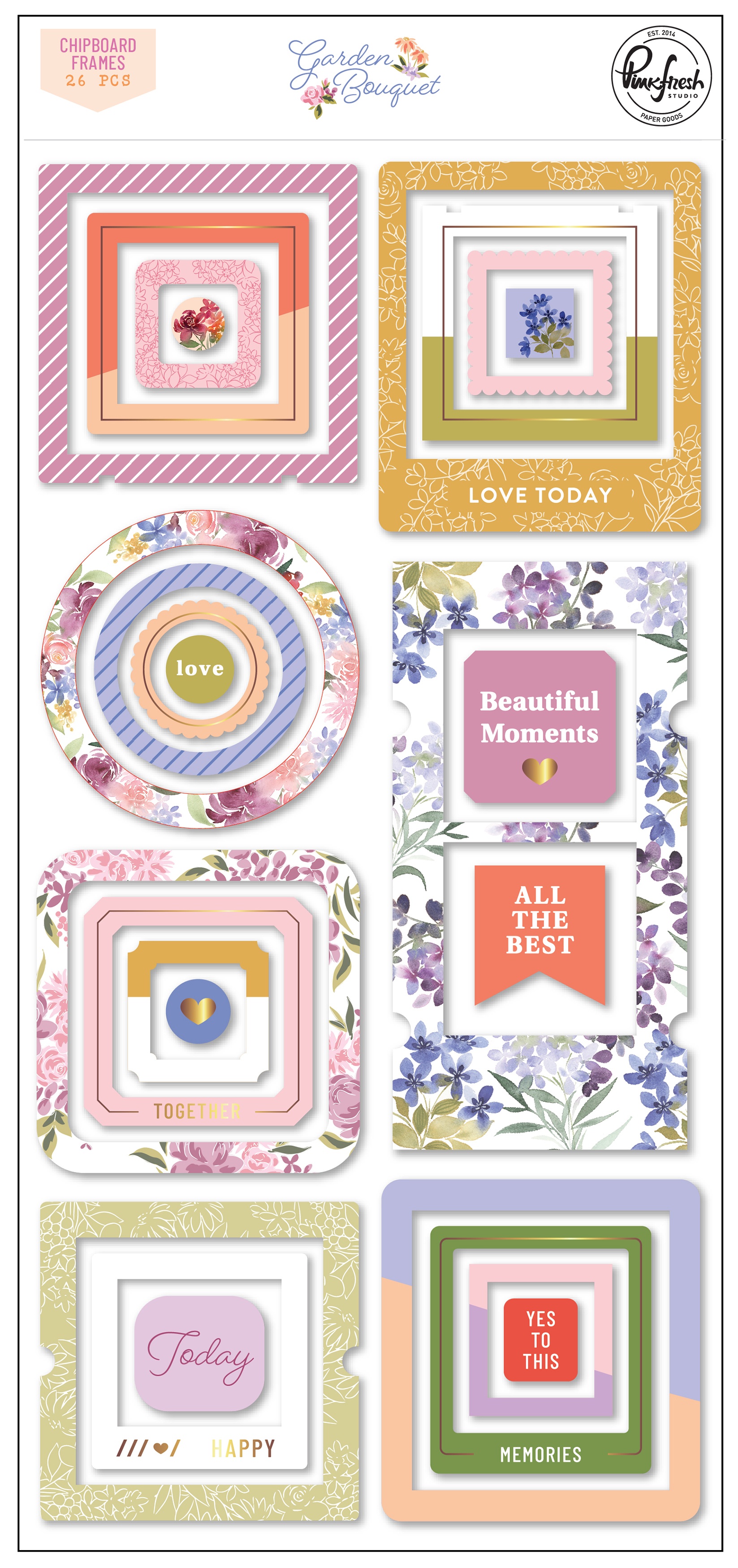 PinkFresh Chipboard Frames Stickers-Garden Bouquet