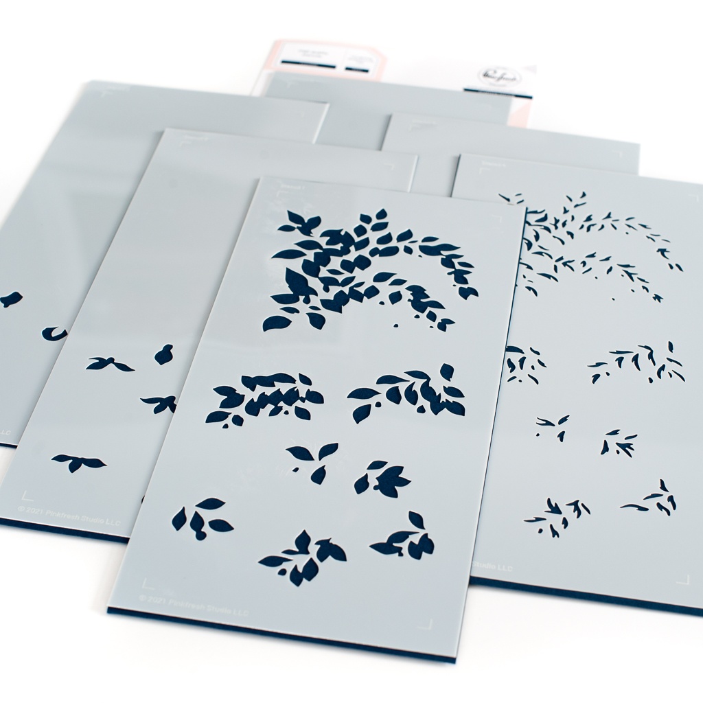 Pinkfresh Studio Slimline Stencils 4"X9" 6/Pkg-Fuchsias Layering