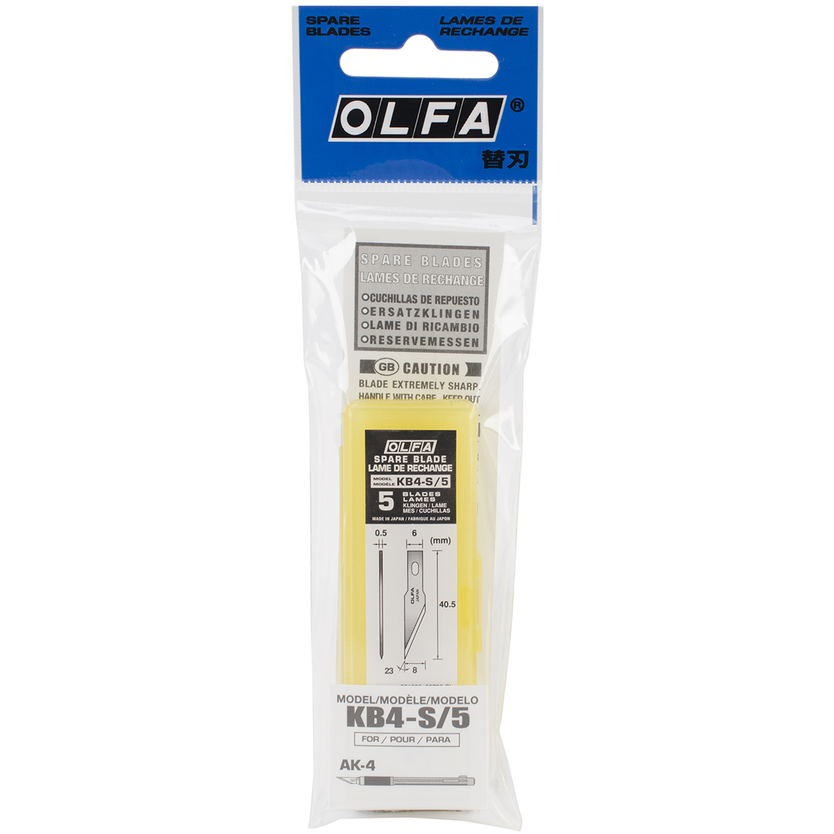 OLFA-Precision Art Blades. These twenty-three degree angle blades are made from high quality carbon tool steel and are unparalleled for sharpness and superior edge retention. Perfect for use where accurate cuts are required! This package contains five precision art blades with a thirty-three degree angle. Imported.