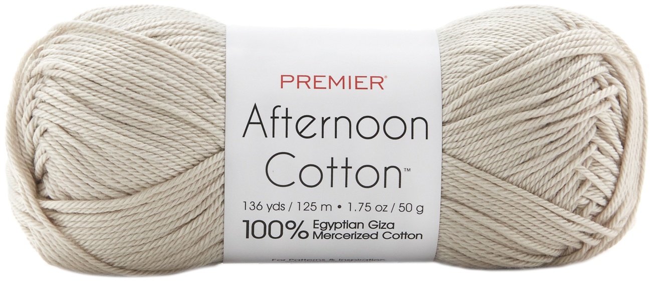 Just in time for Spring, Premier(R) Afternoon Cotton brings sheen and luster to your warm weather projects. Made with 100% Egyptian Giza Mercerized Cotton, this yarn is stronger, produces less lint, and is more resistant to mildew. Perfect for garments and home decor, this yarn is less likely to shrink or lose its shape. Weight Category: 3. Content: 100% Egyptian Giza Mercerized Cotton. Put up: 1.75oz/50g, 136yd/125m. Gauge: 22sx28r=4in/10cm on size US 4/3.5mm knitting needles. Suggested crochet hook size: US F5/3.75mm. Dyelotted: we try but are not always able to match dyelots. Machine Wash, Do Not Bleach, Dry Flat, Iron High Heat. Imported.