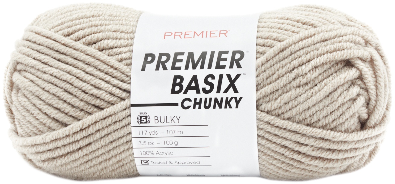 The great value and quality of our Basix yarn in bulky weight. Perfect for crafting quick projects to keep or to give. A huge range of colors makes it easy to find the perfect shade for your creations. Machine washable and dryable for easy gift giving. Weight Category: 5. Content: 100% Acrylic. Put up: 3.5oz/100g , 117yds/107m. Gauge: 10sx12r=4in/10cm on size US 13/9mm knitting needles. Suggested crochet hook size: US M13/9mm. Dyelotted: we try but are not always able to match dyelots. Machine Wash Cold, Tumble Dry, Do Not Iron. Imported.