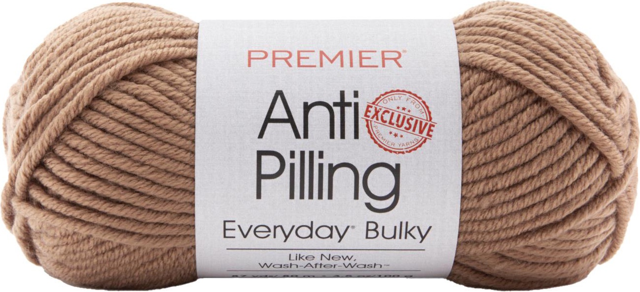 Premier Yarns-Everyday Bulky. Let Everyday Bulky bounce into your stitching basket! Bright, bold, modern colors give this springy super bulky yarn a fun look. Projects stitch up in a flash, helping you wrap yourself and your family in the soft, anti-pilling acrylic. The anti-pilling acrylic will keep that bright, just-made look, wash after wash. Weight category: 6. Content: 100% acrylic anti-pilling. Putup: 3.5oz/100g, 87yd/80m. Gauge: 10sx12r = 4in/10cm on size US13/9mm knitting needles. Suggested crochet hook size: USM13/9mm. Care: Machine wash warm. Tumble dry normal. Do not iron. Do not dry clean. Do not bleach. Comes in a variety of colors. Each sold separately. Imported.
