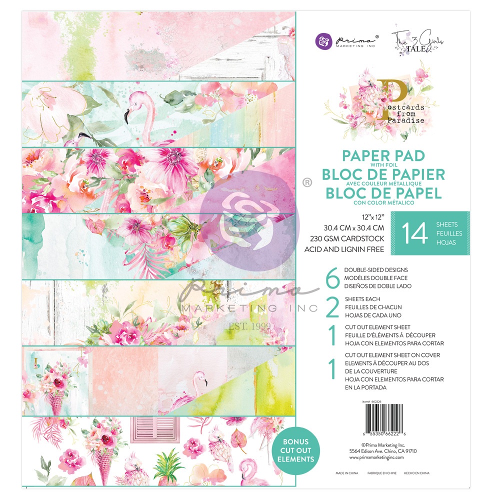 Prima Marketing Double-Sided Paper Pad 12"X12" 14/Pkg-Postcards From Paradise, 6 Foiled Design