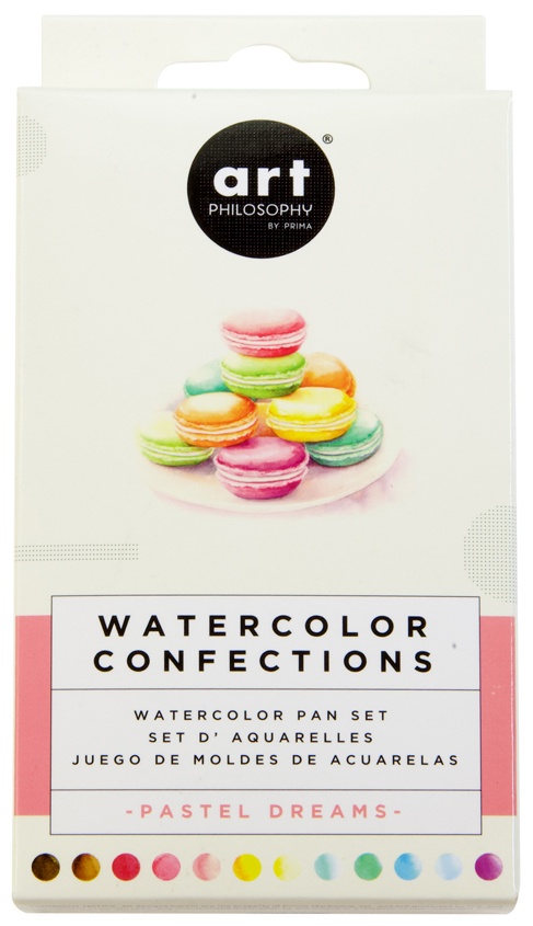 Prima Marketing-Watercolor Confections Watercolor Pans: Pastel Dreams. These artist grade, high quality and highly pigmented watercolor pans are sized perfectly for artists on the go. The professional grade paints provide bright, intense, smooth and long lasting colors that work beautifully for any art or mixed media project. This 3x5x1 inch package contains twelve watercolor pans within one metal palette tin with two fold-out mixing areas. Imported.