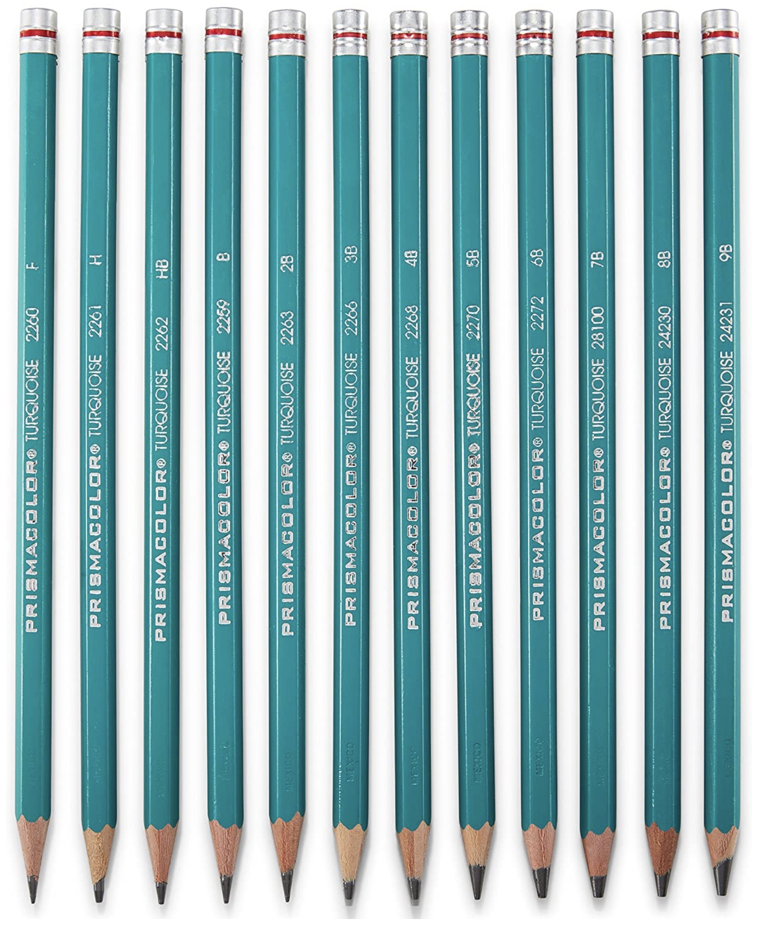 Draw intensely dark shadows, rich details and sultry highlights with Prismacolor Premier Turquoise Sketching Pencils. This selection of drawing pencils features 12 soft lead grades from sumptuously dark 9B and 8B all the way to multipurpose HB, F and H. That means everyone from advanced portrait artists and skilled amateurs alike will have the tools necessary to create just the right marks. Each drawing pencil features leads with superior smoothness that are supple and also strong enough to reduce chipping. Bring precision to your craft with Prismacolor drawing pencils.