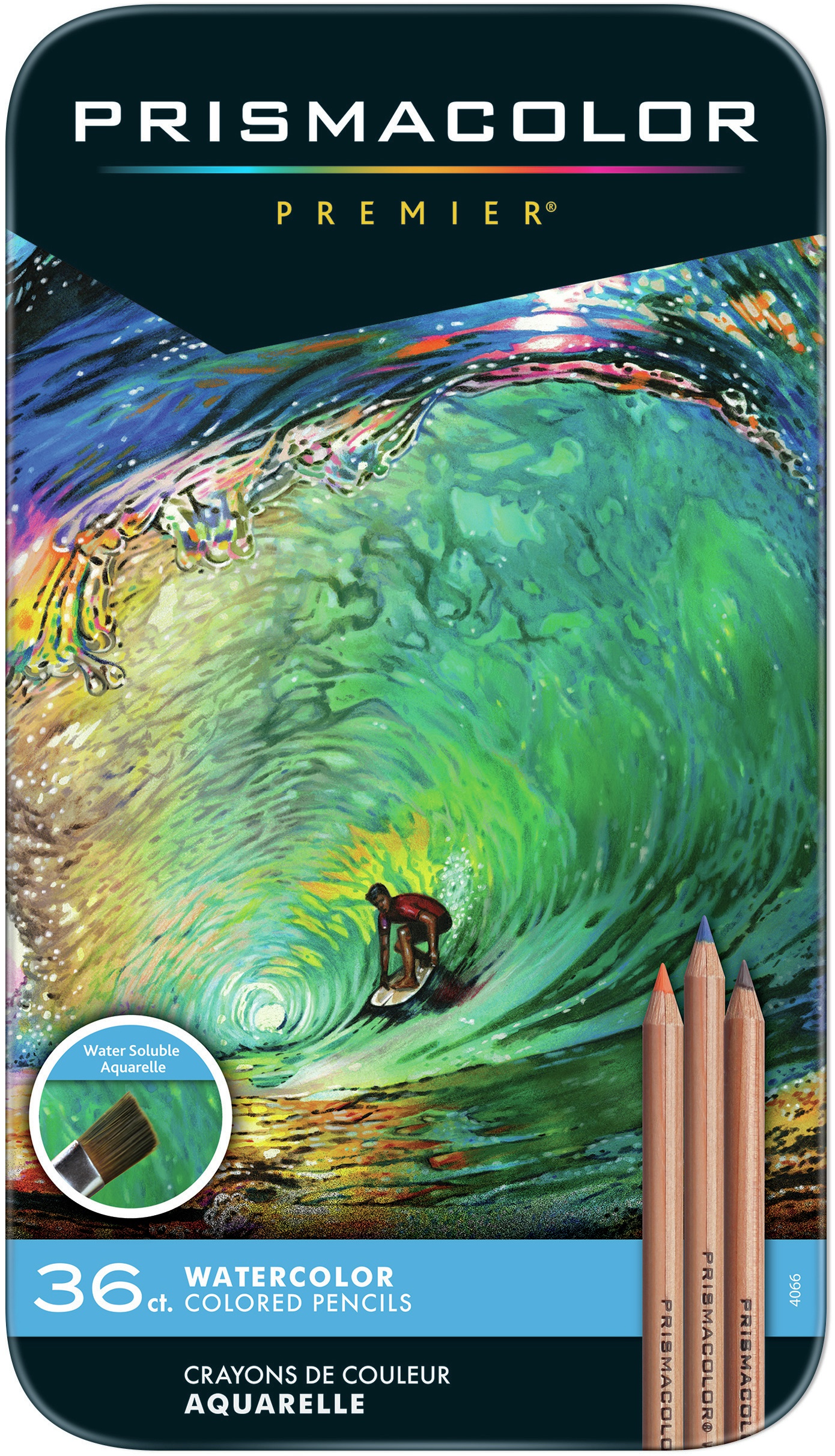 SANFORD-PrismaColor Watercolor Pencils. Professional quality, water soluble colored pencils that can be used wet or dry and offer superior lightfastness. This package contains thirty-six Watercolor Pencils in a reusable 8x4-1/2x1-1/4 inch storage tin. Conforms to ASTM D426. Imported.