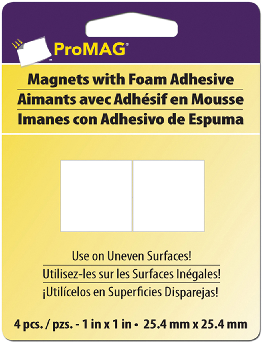 ProMag Square Magnets W/Foam Adhesive 1" 4/Pkg