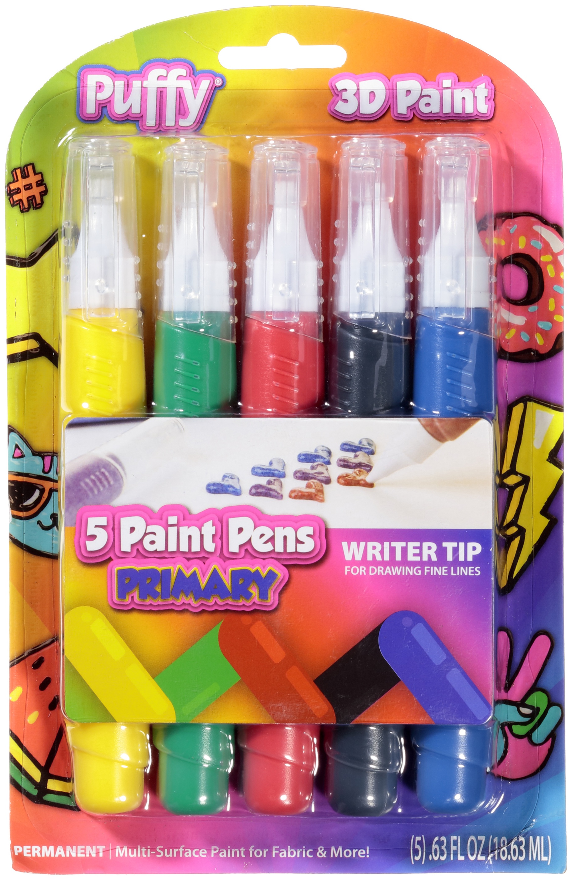 Puffy Paint Pens .63oz 5/Pkg Primary