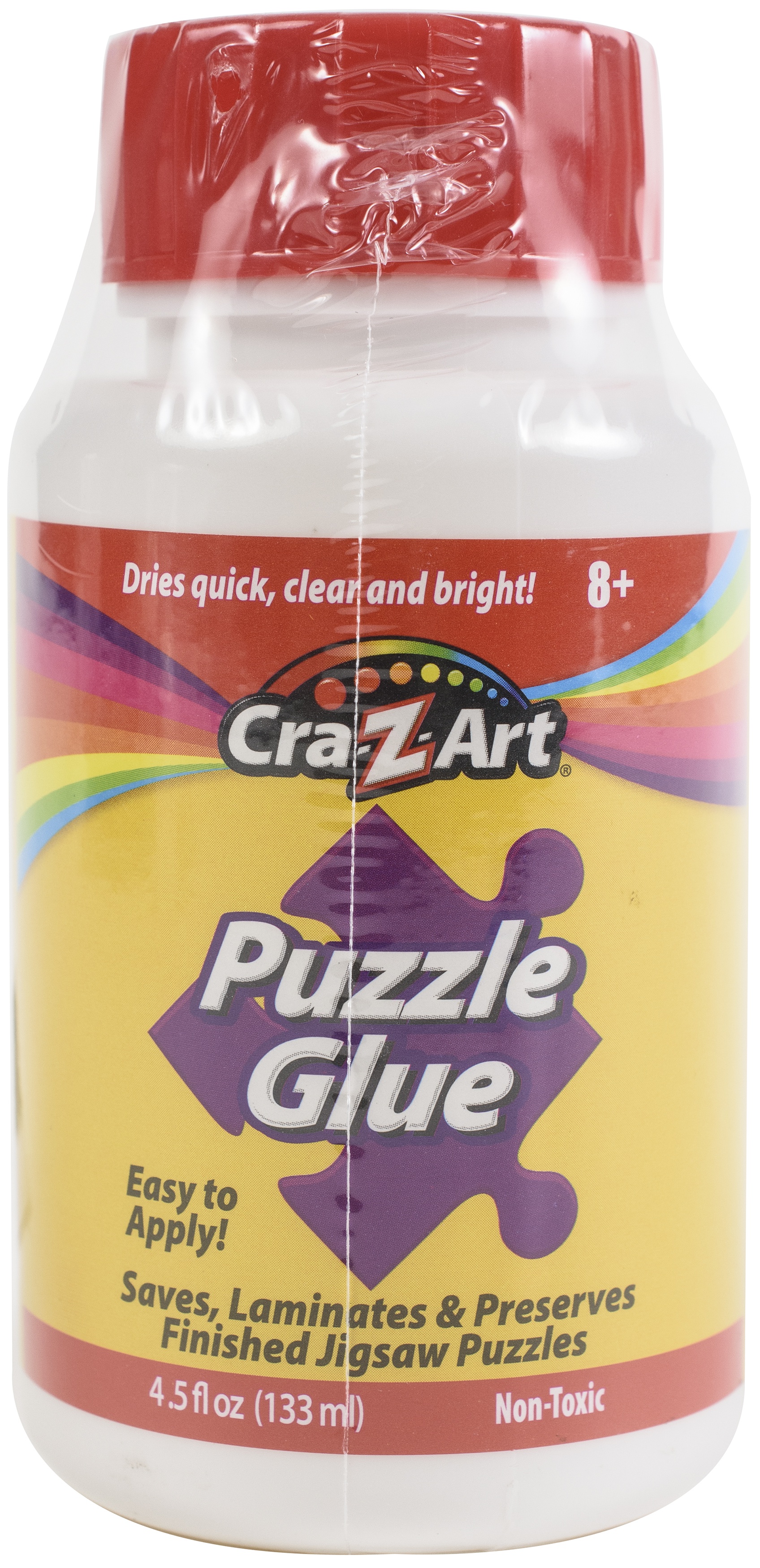 Cra-Z-Art Puzzle Glue is great for saving and displaying your completed puzzles. This glue is specially formulated for clarity and extra shine. It is easy to apply and dries clear. Each bottle includes a re-usable glue applicator.