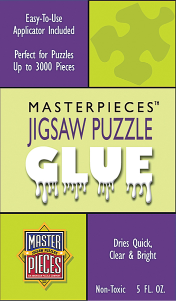 MASTERPIECES-Jigsaw Puzzle Glue. Have you ever stood back after finishing a puzzle and wish you could frame it? Whether it is because it is a gorgeous picture or just the accomplishment of finally being done, Master Pieces have just the thing for you! This puzzle glue dries quickly, is crystal clear and protects and strengthens your puzzle so you can frame it. The more layers you put on the more secure the hold! Non-toxic. 5oz/148ml. Imported.