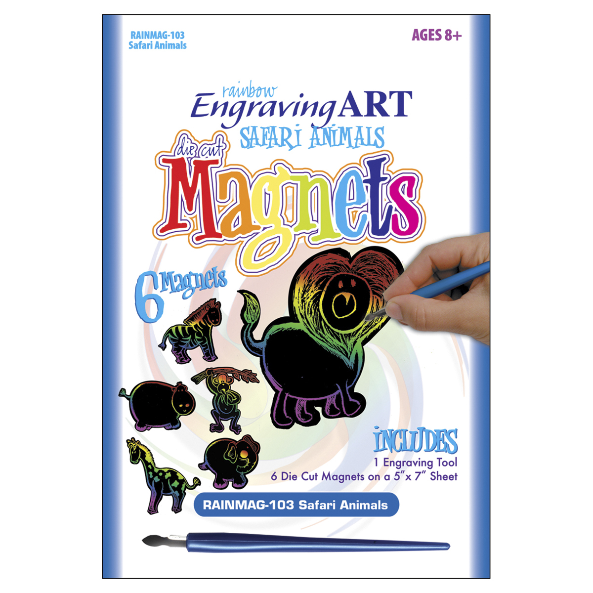 ROYAL LANGNICKEL-Engraving Art. Engraving art is a great way to get the kids started with out the mess. A variety of these kits are available and there is sure to be one perfect for rainy days, camps, fun day at school and much more. This package contains Rainbow Magnet Kit: one 7x5in sheet of six die cut magnets and an engraving tool. Available in a variety of themes: each sold separately. Recommended for children ages 8 and up. WARNING: Choking Hazard-small parts. Not for children under 3 years. Imported.