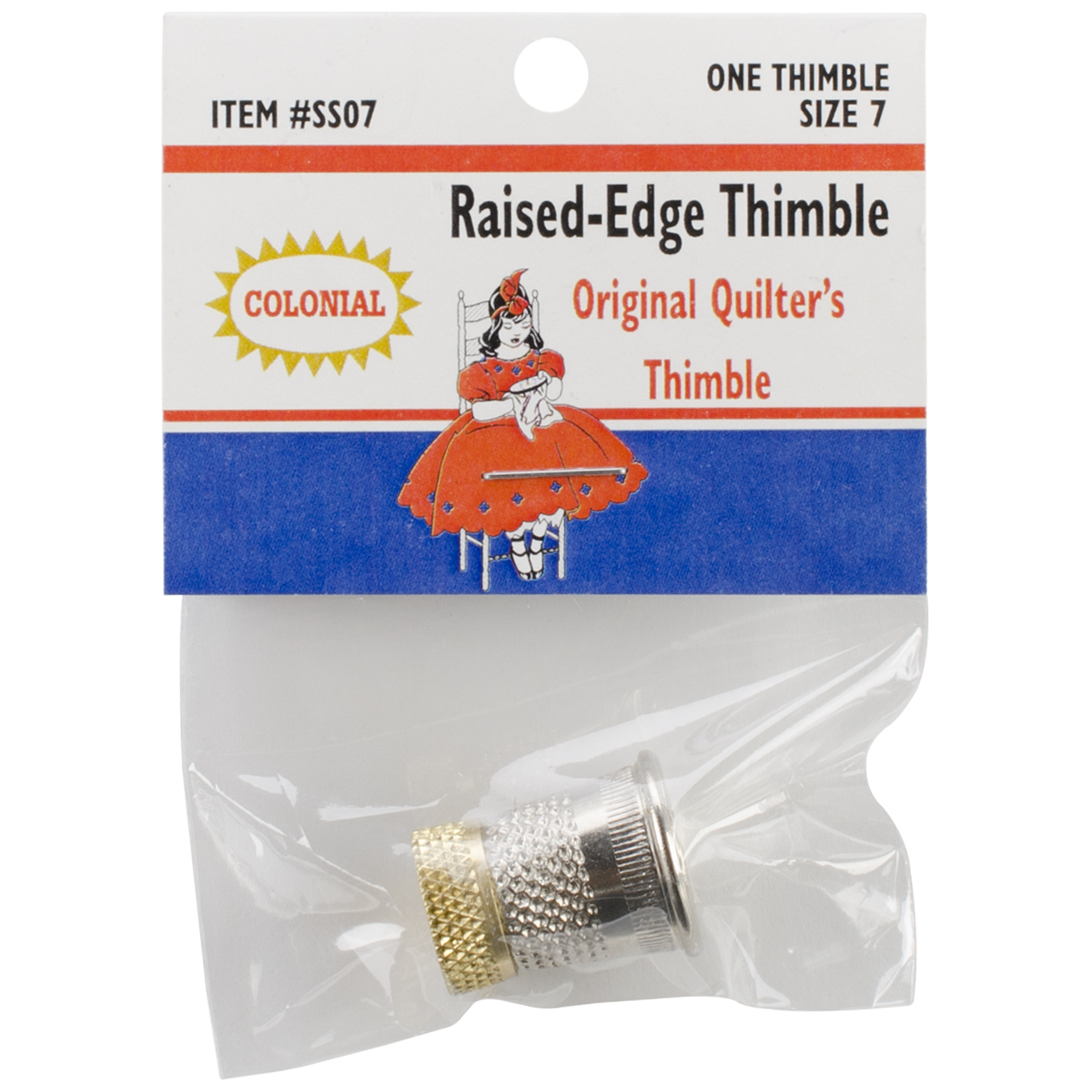 COLONIAL NEEDLE-Raised Edge Thimble. Make stitching easier with a side stitcher thimble! This package includes one size six raised edge thimble. Made in USA.