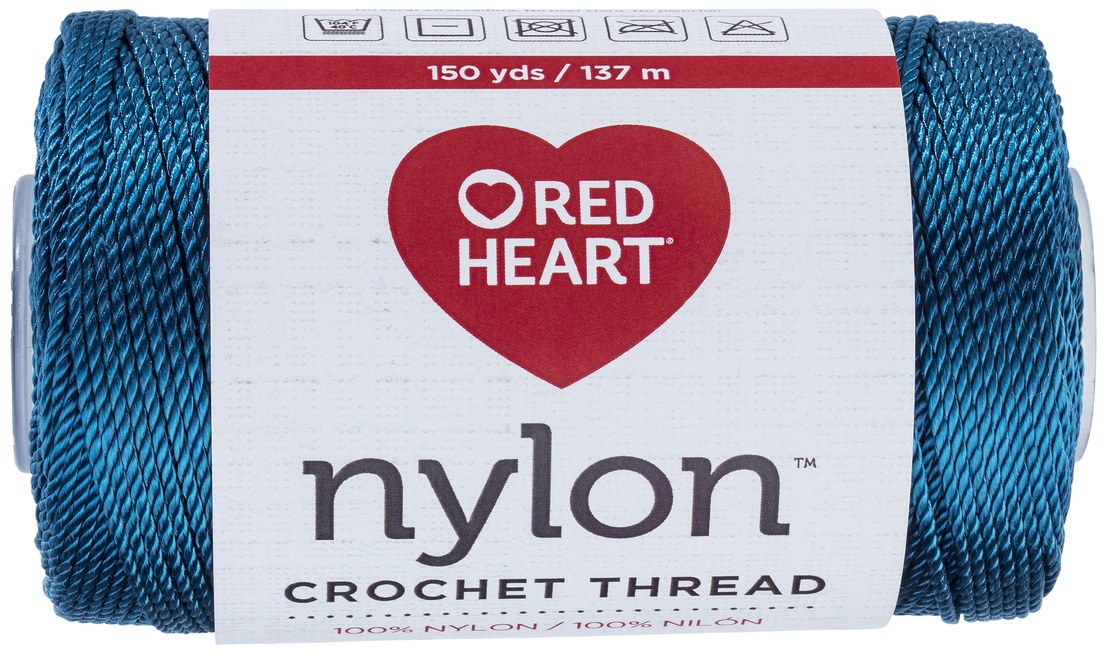 Red Heart-Nylon Crochet Thread. The perfect crochet nylon for home decor, apparel, and accessories. Size: 18. Made of 100% Nylon. Putup: 150yd/137m. Recommended Crochet Hook US G6/4mm, recommended knitting needles US6/4mm. Dyelotted: we try but are not always able to match dyelots. Care: Machine wash gentle, no bleach, dry flat. Comes in a variety of colors. Each sold separately. Imported.