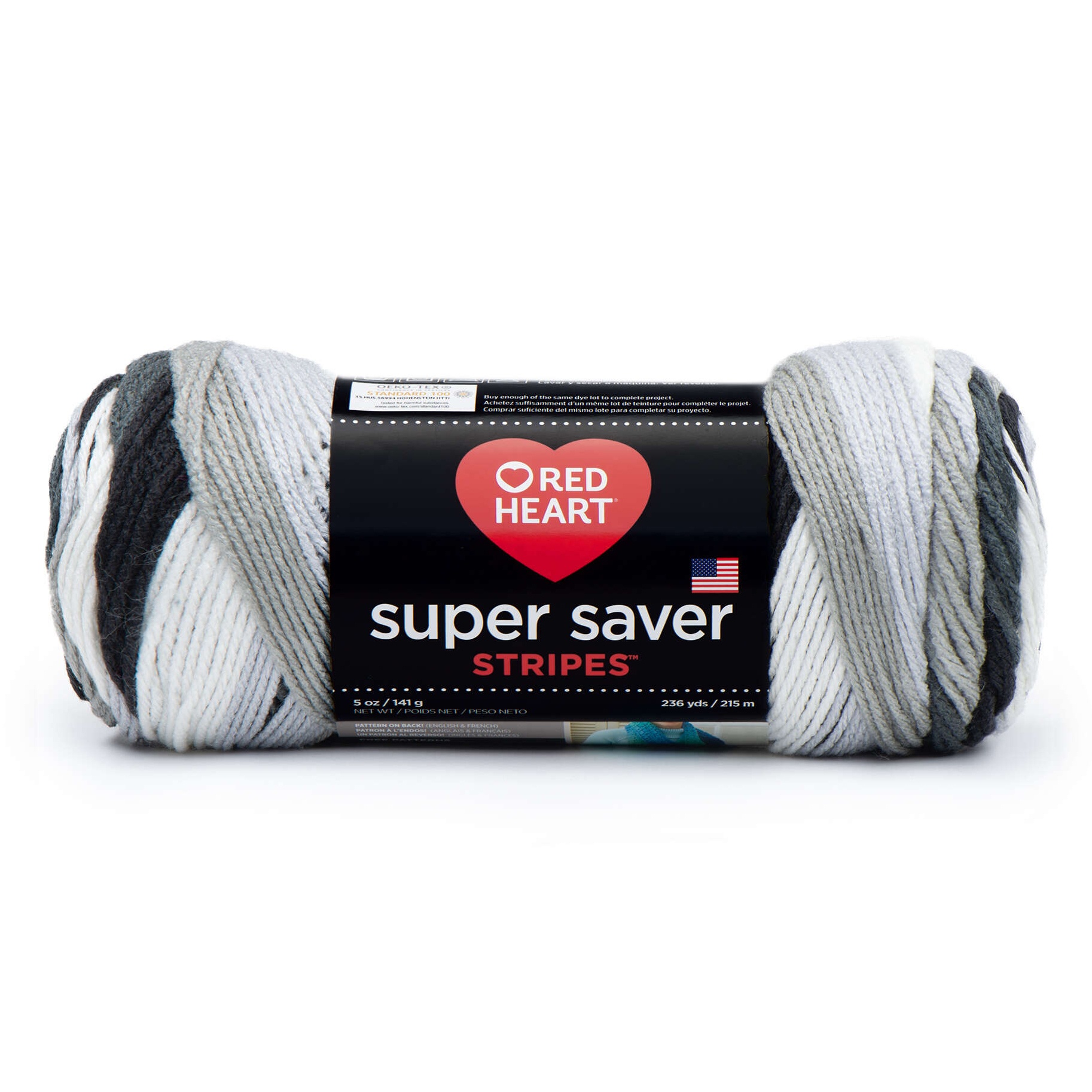 Red Heart-Super Saver Yarn. This medium weight has been America's bestselling yarn for over seventy years! Perfect for all knit and crochet projects. Weight category: 4. Content Solids & Multi: 100% acrylic. Content Flecks: 96%acrylic/4% other fibers. Putup Multi & Flecks: 5oz/141g, 236yd/215m. Putup Solids: 7oz/198g, 364yd/333m. Gauge: 17st x 23r = 4in/10cm on size US8/5mm knitting needles, Suggested crochet hook size I9/5.5mm hook. Dyelotted: We try but are not always able to match dyelots. Solids are not Dyelotted. Care: machine wash, tumble dry, do not bleach, do not iron, dry cleanable. Made in USA.