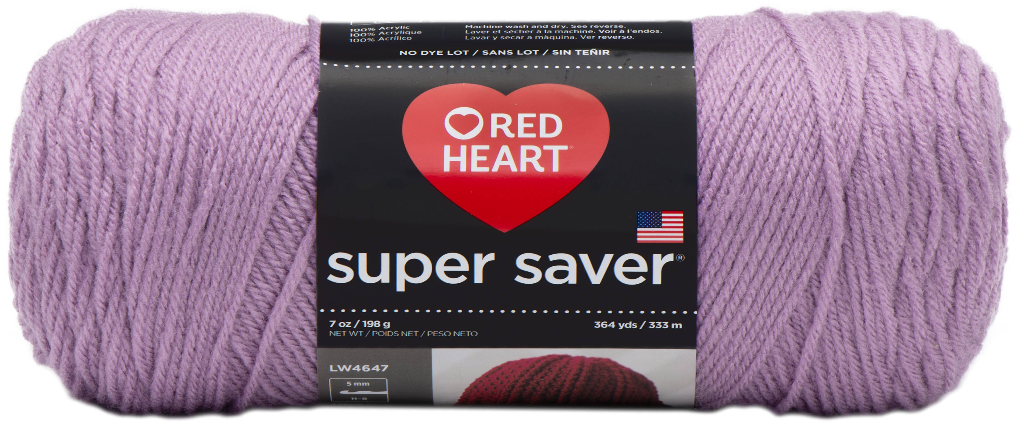 Red Heart-Super Saver Yarn. This medium weight has been America's bestselling yarn for over seventy years! Perfect for all knit and crochet projects. Weight category: 4. Content Solids & Multi: 100% acrylic. Content Flecks: 96%acrylic/4% other fibers. Putup Multi & Flecks: 5oz/141g, 236yd/215m. Putup Solids: 7oz/198g, 364yd/333m. Gauge: 17st x 23r = 4in/10cm on size US8/5mm knitting needles, Suggested crochet hook size I9/5.5mm hook. Dyelotted: We try but are not always able to match dyelots. Solids are not Dyelotted. Care: machine wash, tumble dry, do not bleach, do not iron, dry cleanable. Made in USA.