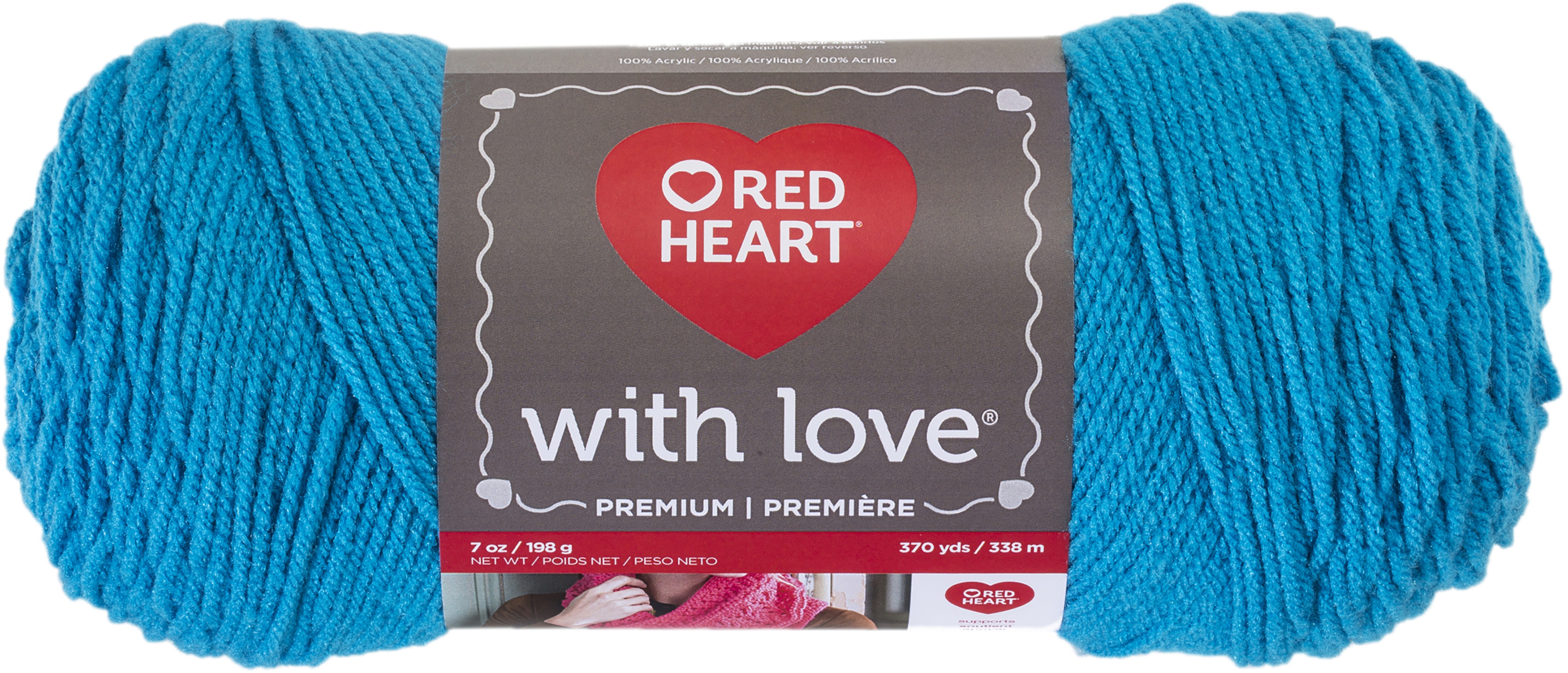 Red Heart-With Love Yarn. This medium weight has an ultra-soft, premium acrylic yarn perfect for throws, garments and accessories! Perfect for all knit and crochet projects. Weight category: 4. Content Solids & Multi: 100% acrylic. Putup Multi: 5oz/141g, 230yd/211m. Putup Solids: 7oz/198g, 370yd/338m. Gauge: 16s x 22r = 4in/10cm on size US9/5.5mm knitting needles, Suggested crochet hook size K10.5/6.5mm hook. Dyelotted: We try but are not always able to match dyelots. Care: machine wash, tumble dry, do not bleach, do not iron, dry clean with P solvents only. Made in USA.