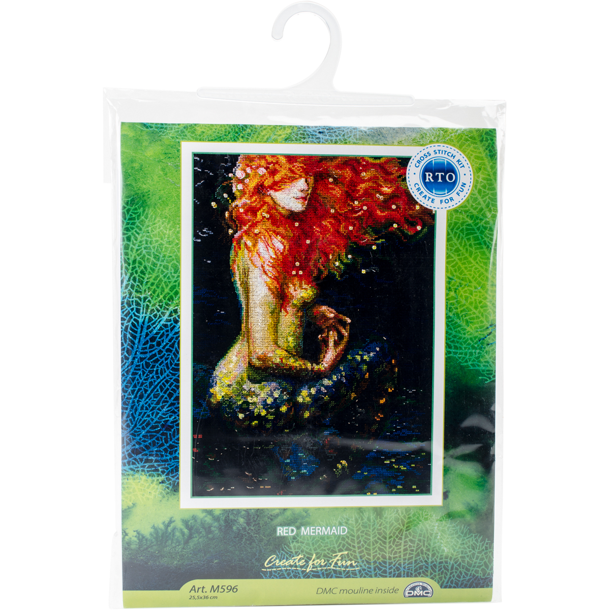 RTO-Counted Cross Stitch Kit. This kit will allow you to create a beautiful landscape design that will make a great decoration for any room of the house once you have completed it. This package contains 100% cotton floss, 14 count Aida fabric, one needle, a chart and instructions. Design size: 14-1/4x10 inches. Design: Red Mermaid. Imported.
