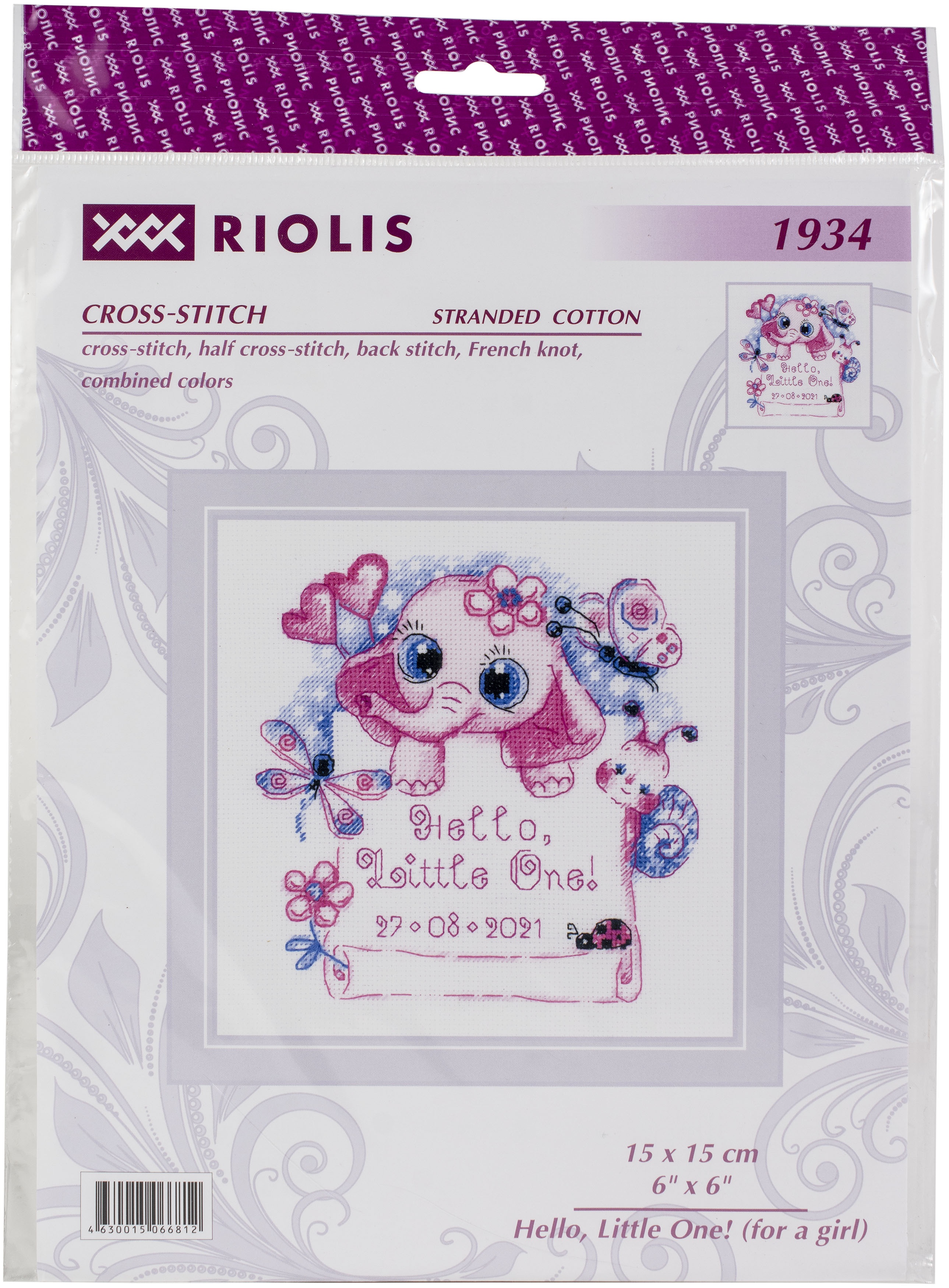 RIOLIS Counted Cross Stitch Kit 6"x6" Hello, Little One! Girl (18 Count)