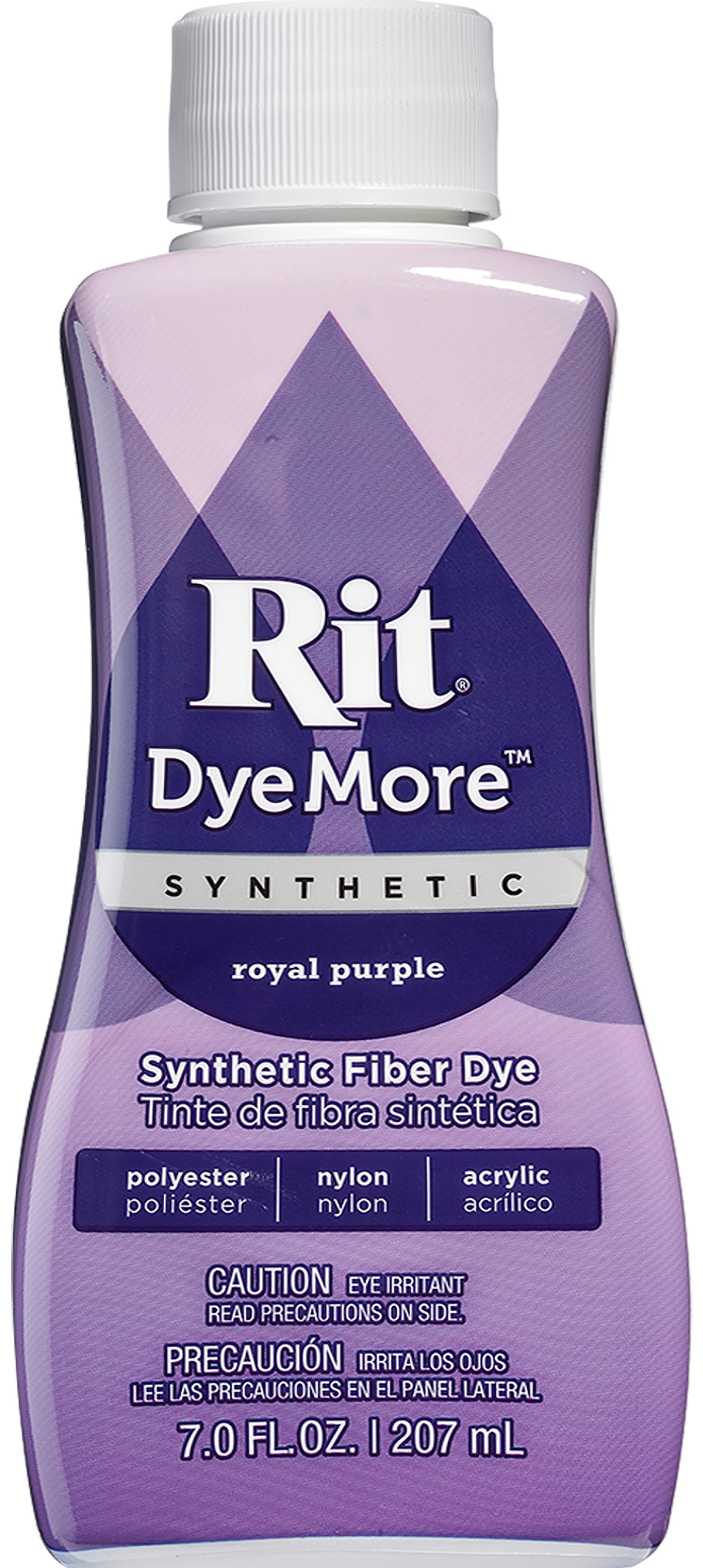 Rit Dye-More Synthetic. Specially formulated to dye polyester and cotton/poly/blends, acrylic acetate and nylon! Bright and vivid coloring. Stove-top dye method preferable. This package contains one 7oz bottle of Rit Dye More Synthetic. Comes in a variety of colors. Each sold separately. Made in USA.