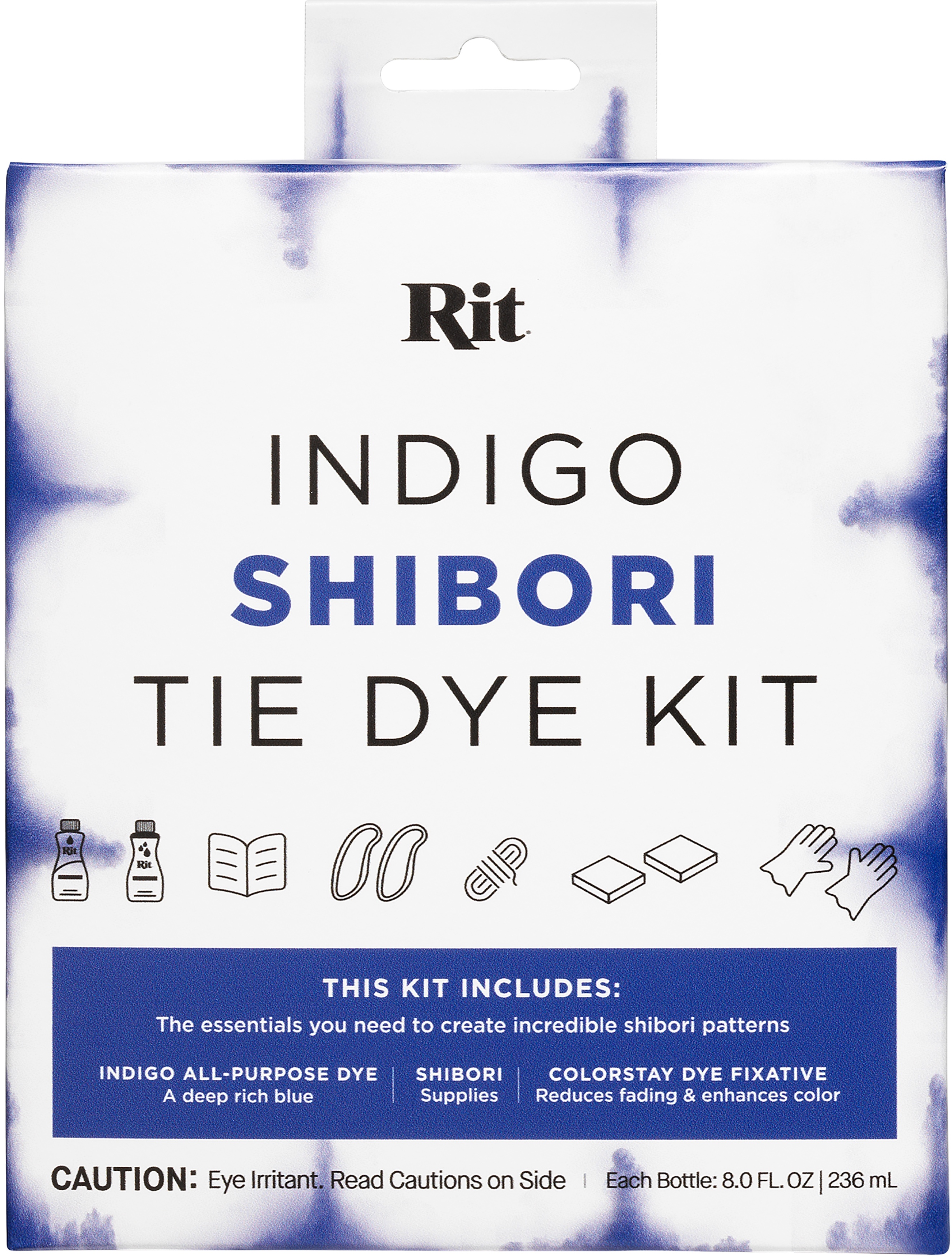 Shibori is a Japanese dyeing technique that involves folding, twisting or bunching cloth, binding it and then dyeing it with indigo. Rit has assembled an easy-to-use kit that includes everything needed to create a wide range of unique shibori patterns. This 5x5.75x3.25 inch package contains all-purpose dye, ColorStay Dye Fixative, instructions, rubber bands, twine, squares and gloves. Imported.