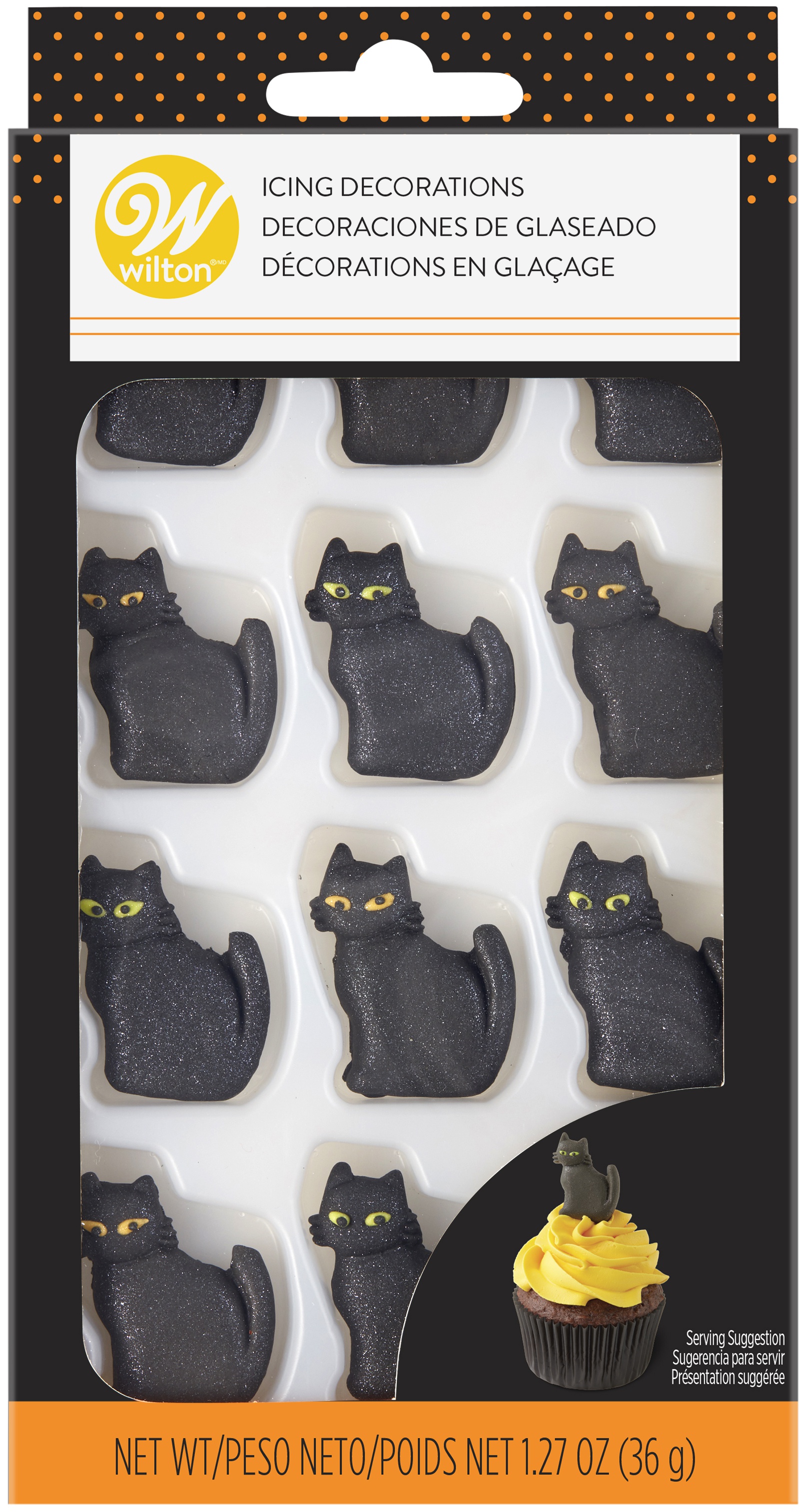 These bewitching black cat icing decorations will add a little sparkly magic to your cakes and cupcakes this Halloween. To decorate, just place on top of your freshly frosted cupcake or attach to other treats with just a dot of icing. These edible decorations are a quick and easy way to add a little spooky fun to any Halloween dessert.