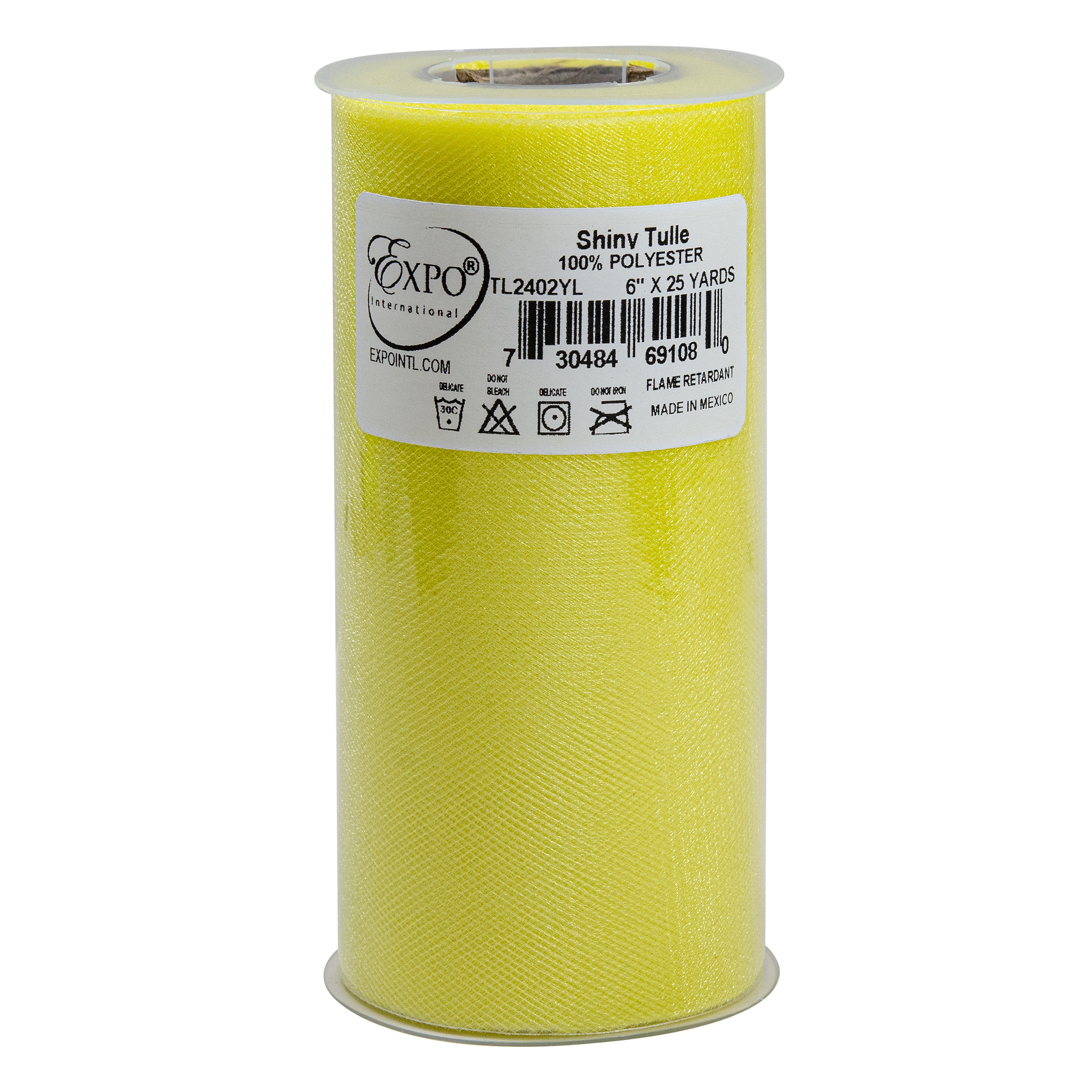EXPO-Tulle. Create tutus, creative costumes, or anything else your creative mind wants with this tulle. Available in a variety of colors (each sold separately). 100% polyester. Machine washable on delicate, tumble dry delicate. Non-chlorine bleach. Do not iron. Flame retardant. This package contains one 25 yard spool of 6 inch wide tulle. Imported.