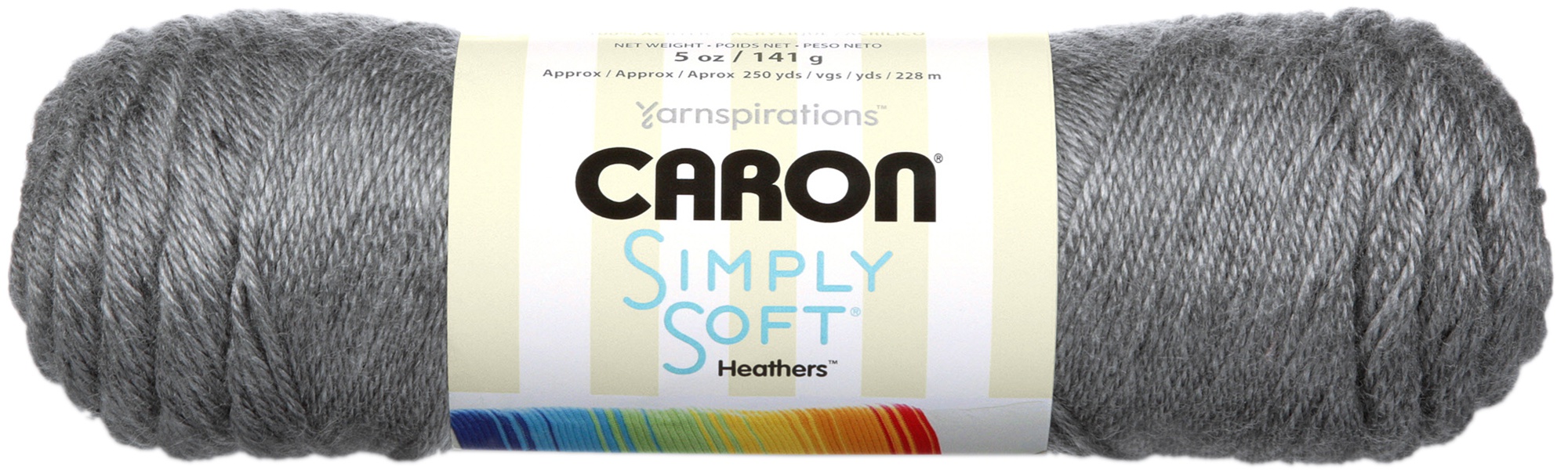 CARON-A luxuriously soft 4-ply classic yarn in timeless heather shades that will coordinate perfectly with the Simply Soft color line. 100% acrylic. 5 ounces (142 grams) 250 yards. Gauge: 4=18 stitches on size 8 needles/crochet hook H8. Dyelotted. Machine wash and dry.