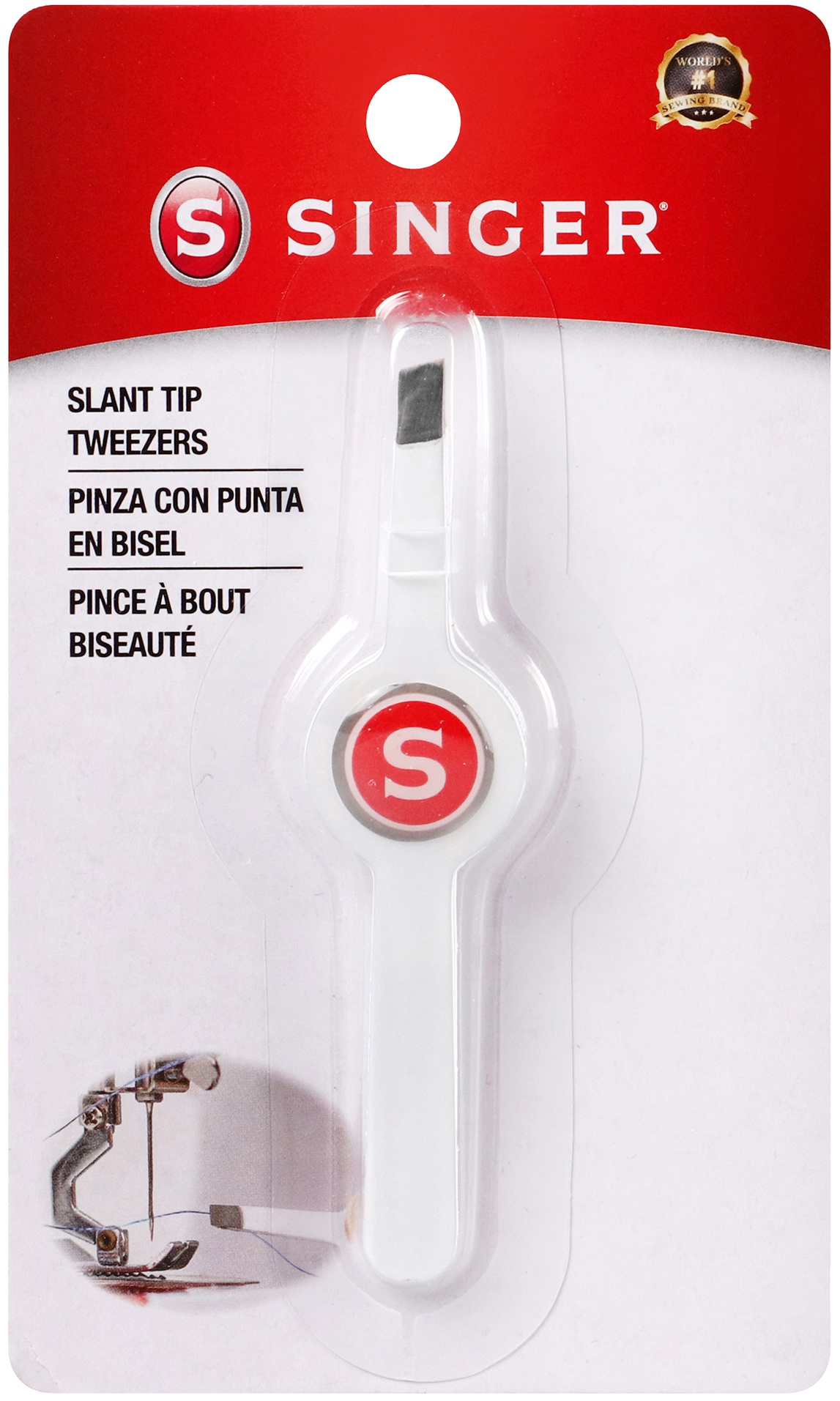 The SINGER tweezers are a necessity to any sewing machine toolkit. The ergonomic cushioned grips provide comfort and the ability to work with them for longer periods of time than standard all-steel tweezers. This package contains one pair of tweezers. Imported.