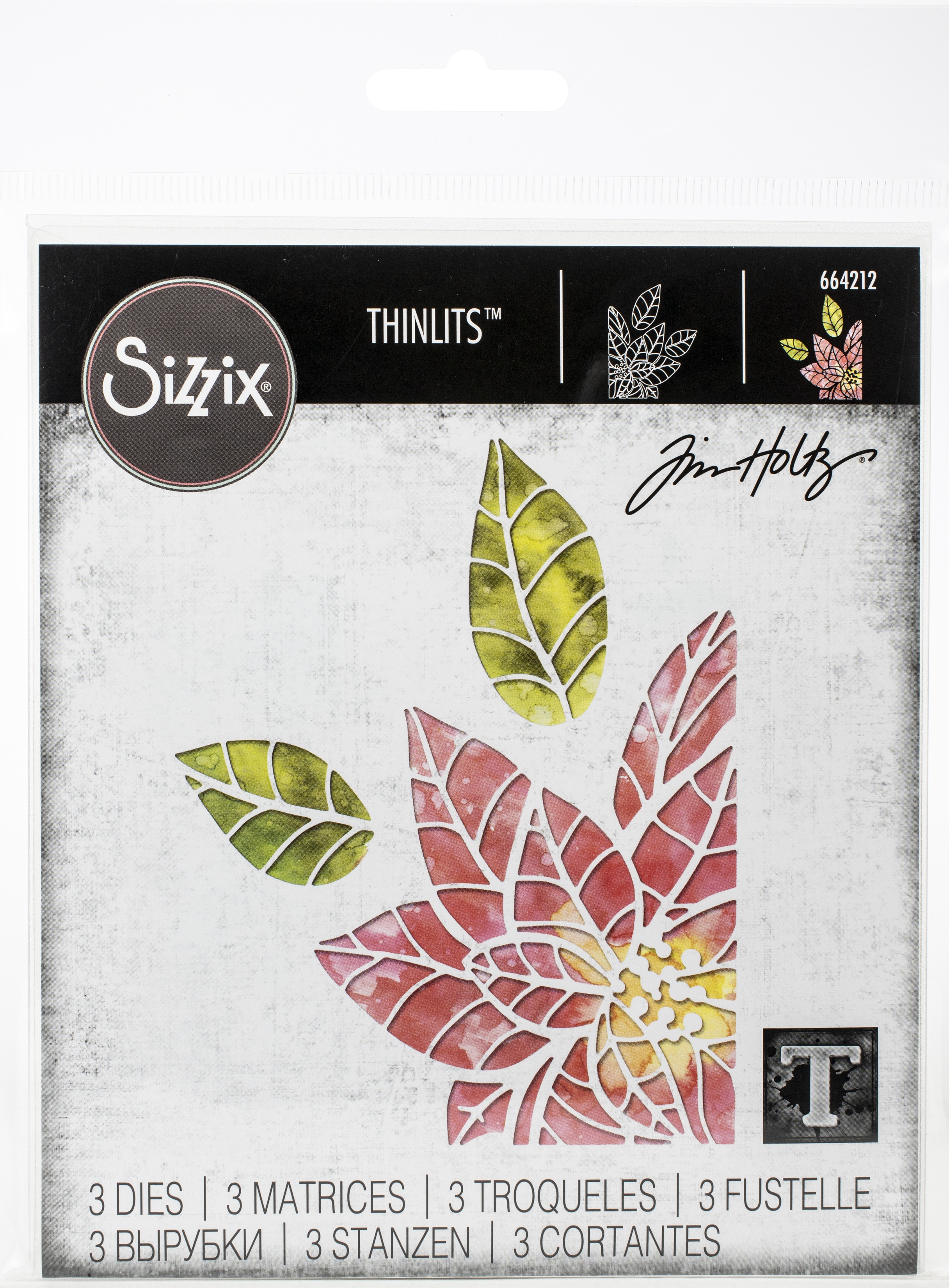 Thinlit dies offer a variety of affordable solo options or multi die options. Thinlits are easy to use and are compact and portable. These dies are compatible with Sizzix BIGkick, BigShot, and Vagabond. This package contains Poinsettia Pieces: a set of three metal dies measuring between 1.75x1 inches and 4.25x3.25 inches. Designer: Tim Holtz. WARNING: Choking Hazard. Not suitable for children under 3 years. WARNING: Cut Hazard, Sharp Blade. Contact may result in injury. Always keep blades away from fingers and body. Handle with Care. Keep out of reach of children. Imported.