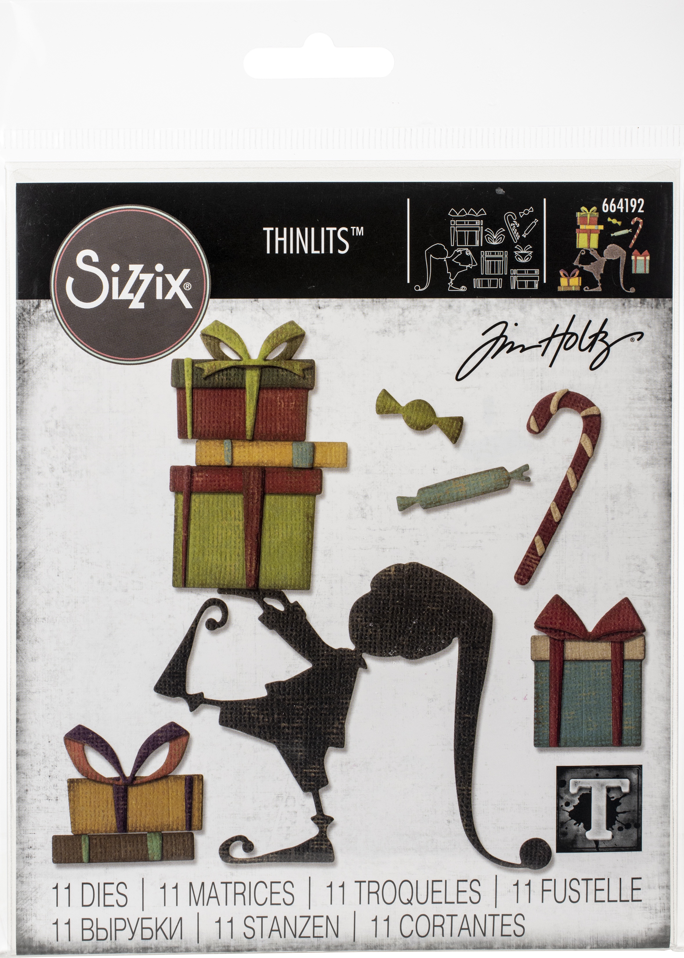 Thinlit dies offer a variety of affordable solo options or multi die options. Thinlits are easy to use and are compact and portable. These dies are compatible with Sizzix BIGkick, BigShot, and Vagabond. This package contains Santa's Helper: a set of 11 metal dies measuring between .75x.25 inches and 3.5x2.625 inches. Designer: Tim Holtz. WARNING: Choking Hazard. Not suitable for children under 3 years. WARNING: Cut Hazard, Sharp Blade. Imported.