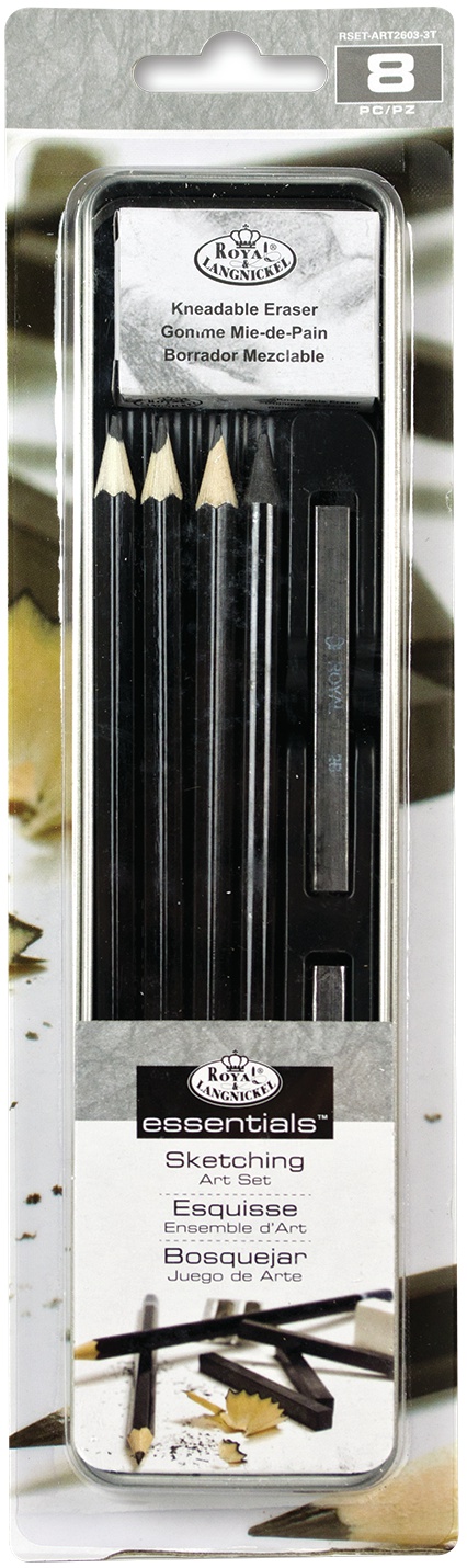 ROYAL BRUSH-Royal & Langnickel Sketching Art Set. This set contains three graphite pencils, two graphite sticks, one woodless pencil, one kneaded eraser and one storage tin (8-3/4x2x1/2 inch). Conforms to ASTM D4236. Imported.