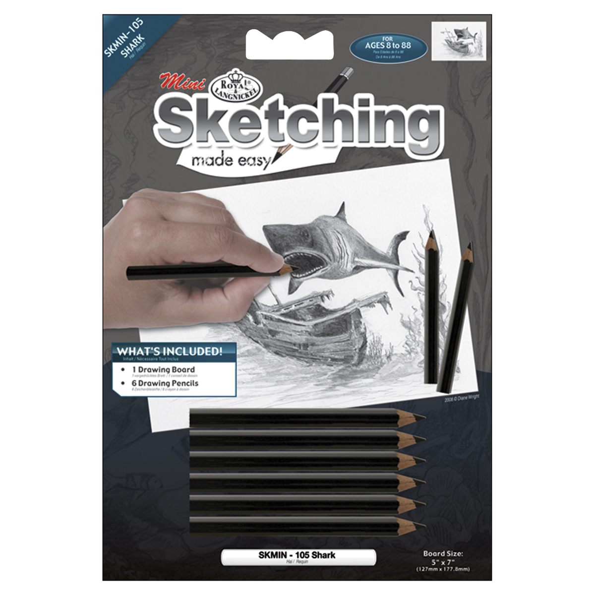 ROYAL LANGNICKEL-Mini Sketching Made Easy. Each kit includes a very lightly pre-printed 7x5in board, six Royal Langnickel graphite pencils (3H, H, HB, 2B, 5B and 6B) and basic sketching instructions. Available in a variety of themes: each sold separately. Recommended for children ages 8 and up. WARNING: Choking Hazard-small parts. Not for children under 3 years. Imported.