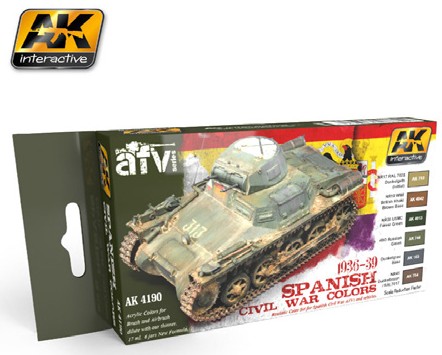 Flat Model Paint by AK Interactive. This set allows us to replicate almost all the military vehicles which participated in the Spanish Civil War conflict, giving even the chance to be used in the several transformations these vehicles had as they were stolen or changed sides during the war.