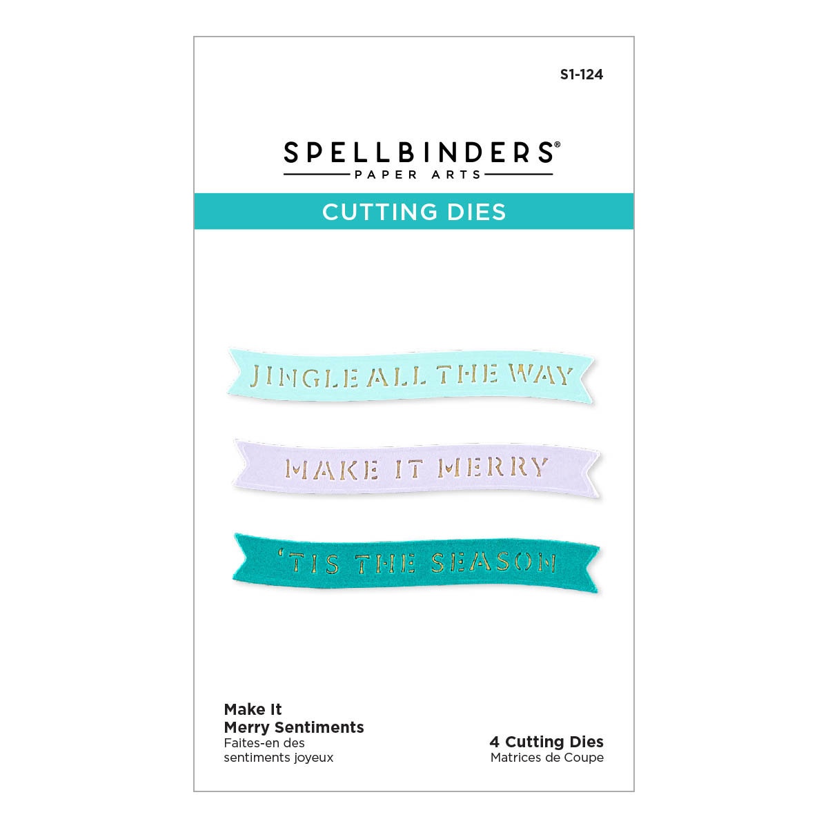 Make It Merry Sentiments. Etched Dies are part of Make It Merry Christmas. The set of four thin metal cutting dies includes a banner die with three interchangeable sentiment inserts to choose from. Nest the banner die and one of the inserts to create a wonderful sentiment cut into the banner. Sentiments include Jingle All the Way, Make It Merry, and Tis The Season. Approximate Size: Banner: 2.70 x 0.45 in./6.90 x 1.10 cm Inserts (3 pcs): 2.60 x 0.40 in./6.60 x 1.00 cm. Imported