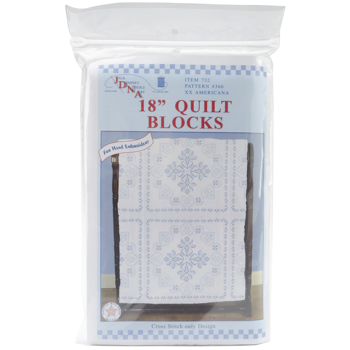 JACK DEMPSEY-Quilt Blocks-Americana. Package contains: six Stamped cotton/poly broadcloth size 18x18 (cut size) quilt squares. Ink is designed to wash out. Color: White.