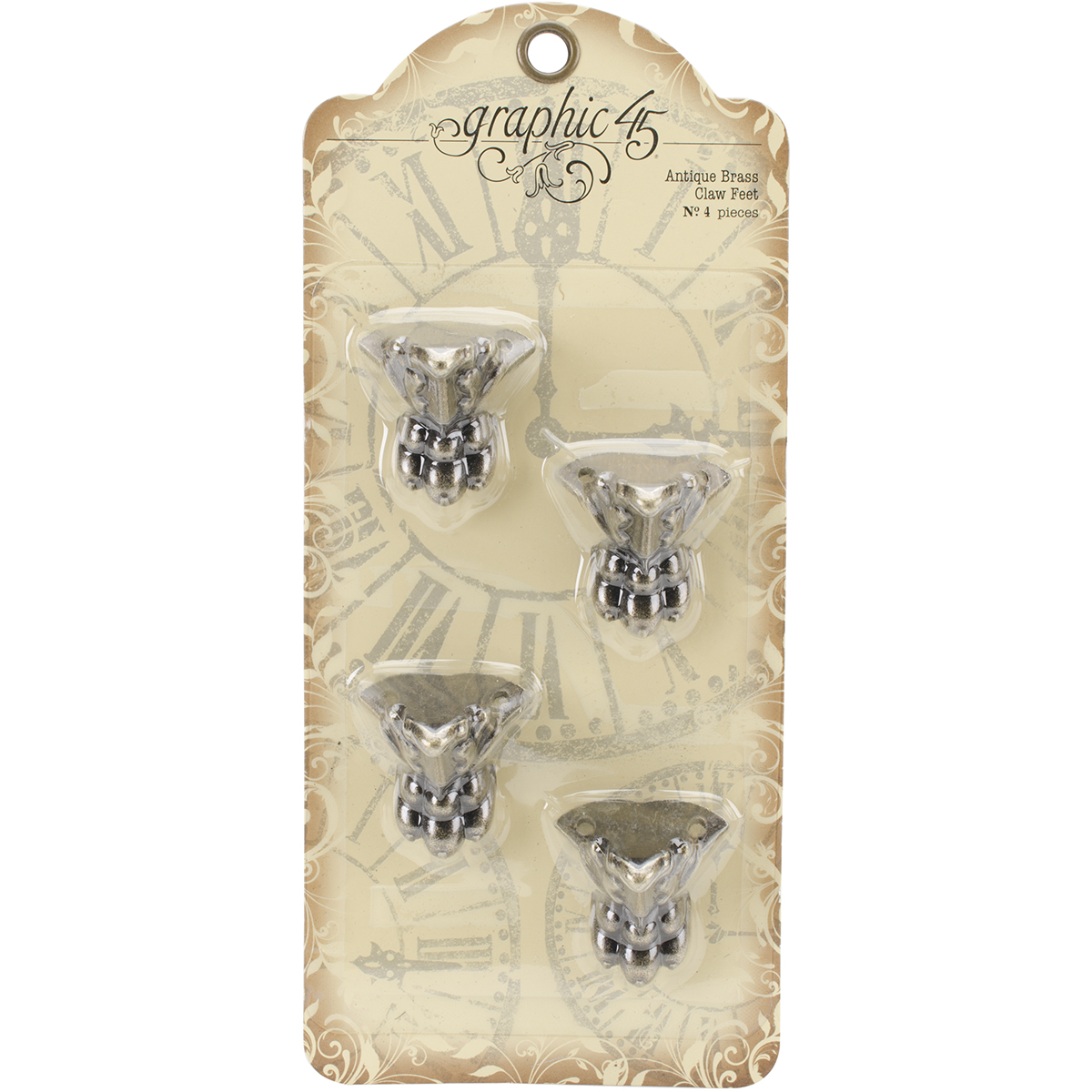 Graphic 45-Staples Claw Feet: Antique Brass. A fun addition to any crafting project. Get creative! This package contains four 3-3/5x1- 5/8 inch antique brass claw feet. Imported.