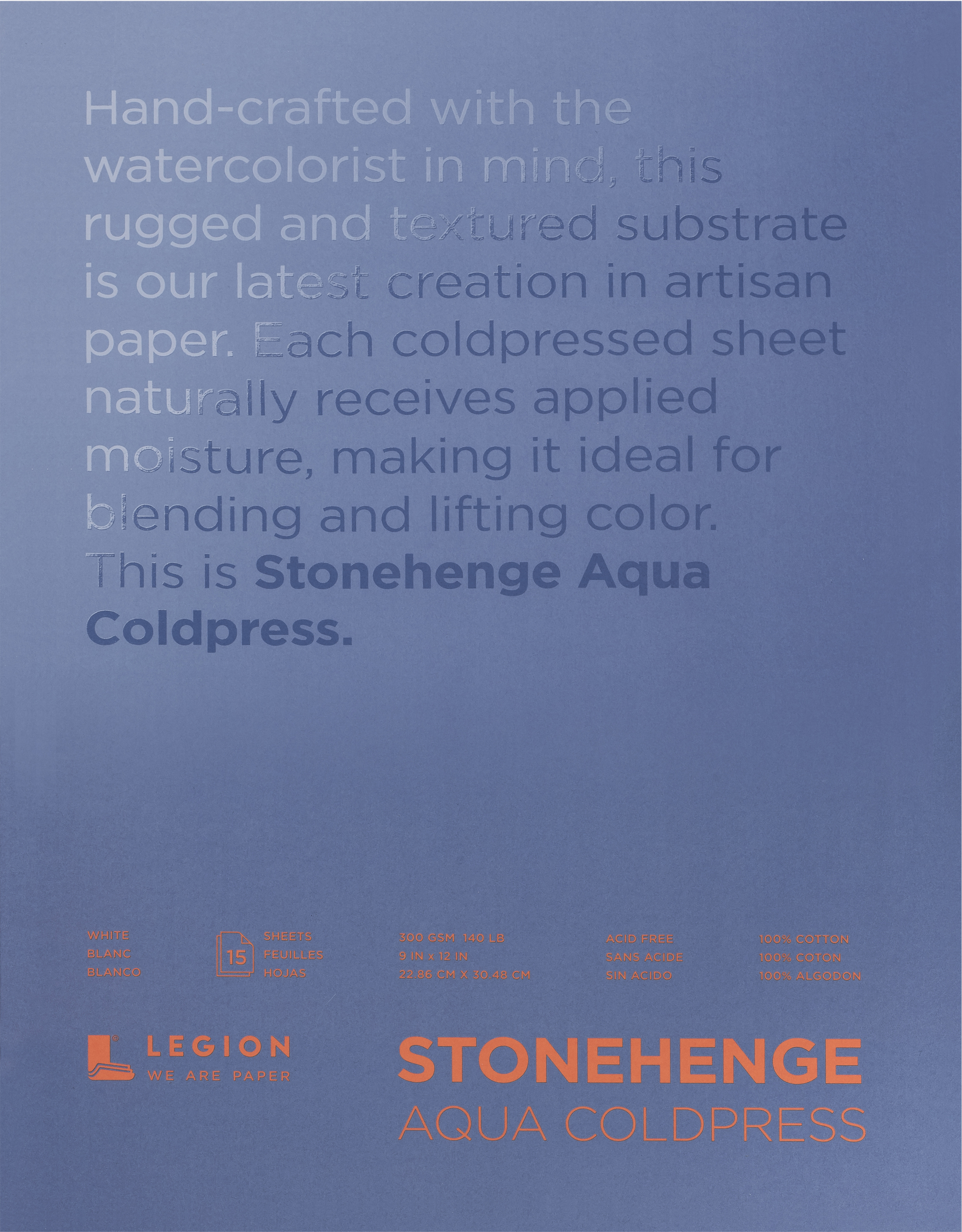 Hand-crafted with the watercolorist in mind, this rugged and textured substrate is the latest creation in artisan paper. Each coldpressed sheet naturally receives applied moisture, making it ideal for blending and lifting color. This package contains 15 9x12 inch sheets. Acid free. Made in USA.
