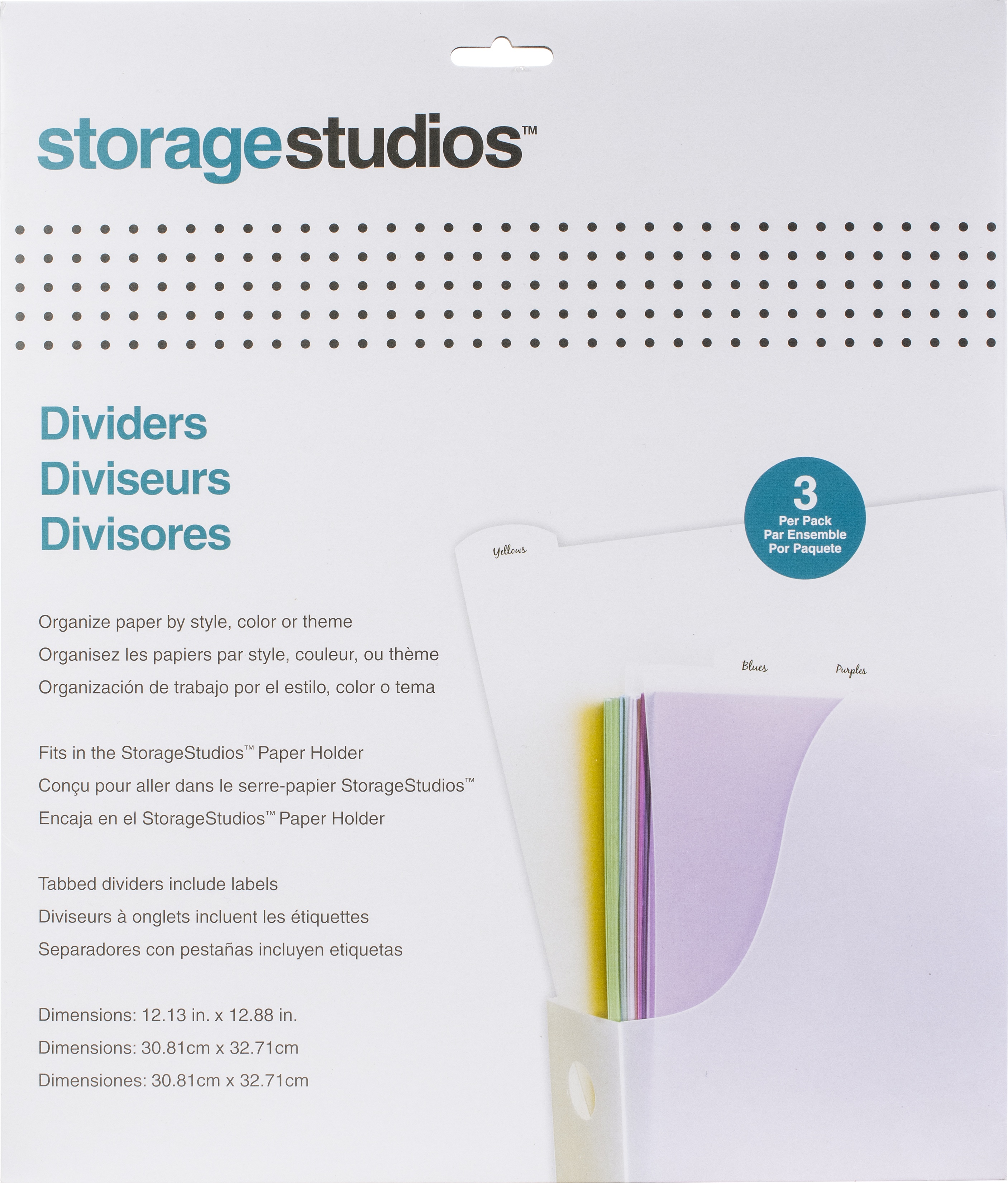 Storage Studios Tabbed Dividers W/Labels 3/Pkg 12.13"X12.88"