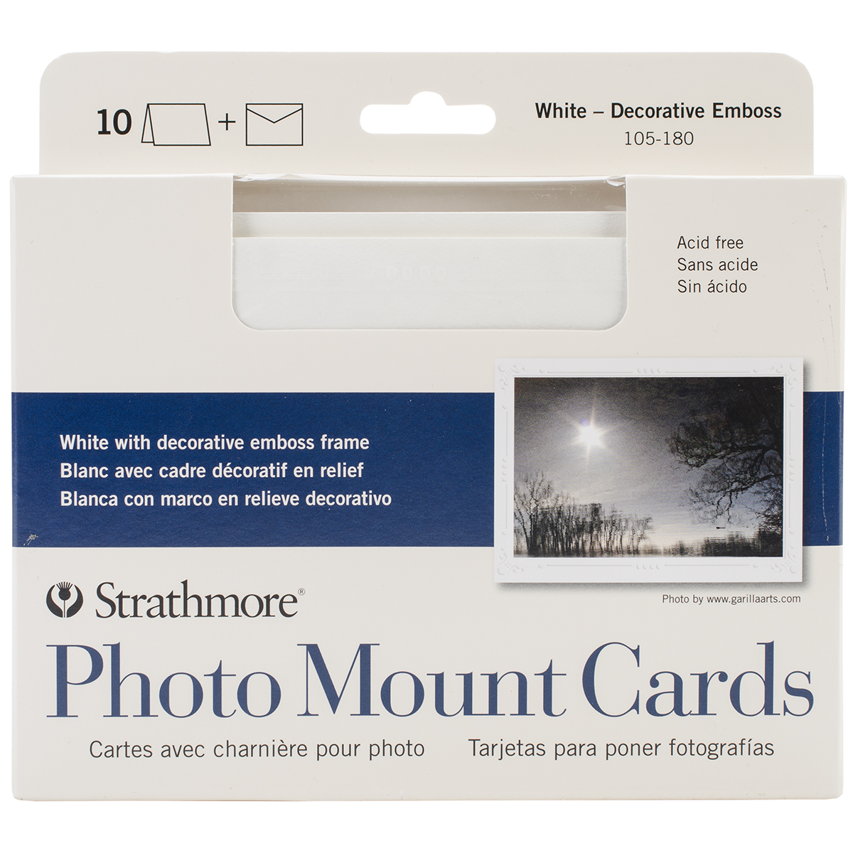 Strathmore-Cards & Envelopes: White Photo Mount. The distinctive texture and quality of Strathmore creative cards are the perfect way to personalize your correspondence! Ideal for colored pencils, rubber stamps, die cuts, collage and more! Create unique, hand decorated cards for special occasions or everyday use. This package contains ten 5x7 inch blank cards with a decorative emboss frame and ten envelopes. Acid free. Made in USA.