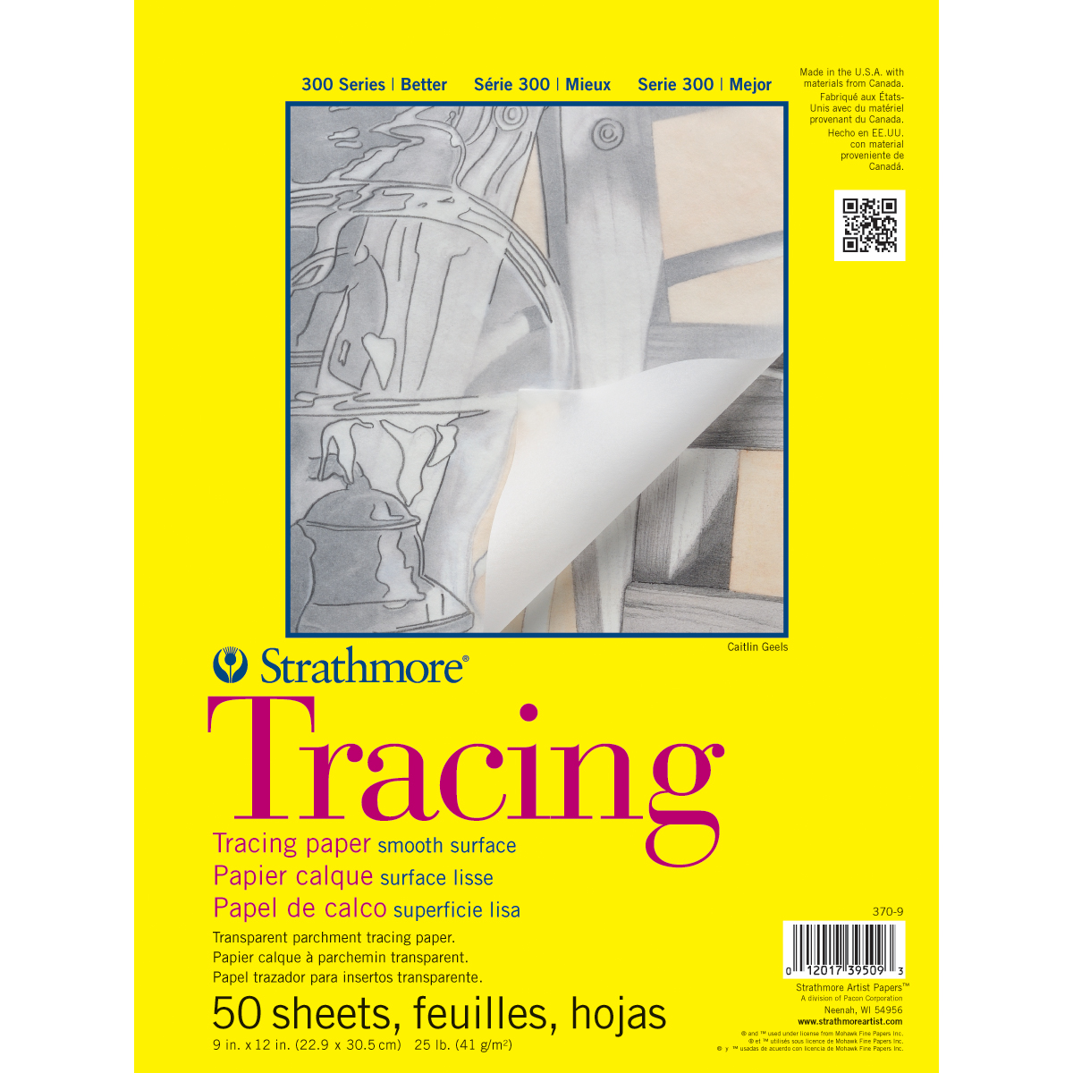 Strathmore-Tracing Paper Pad. A transparent parchment tracing paper with a smooth surface ideal for mastering tracing techniques. This package contains one 12x9 inch tracing pad with fifty sheets of 25lb tracing papers. Made in USA.
