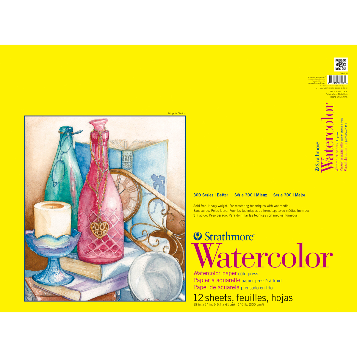 Strathmore-Watercolor Paper Pad. A heavy-weight paper with a cold press finish ideal for mastering wet media techniques. This package contains one 18x24 inch watercolor pad with twelve sheets of 140lb acid free cold press papers. Made in USA.