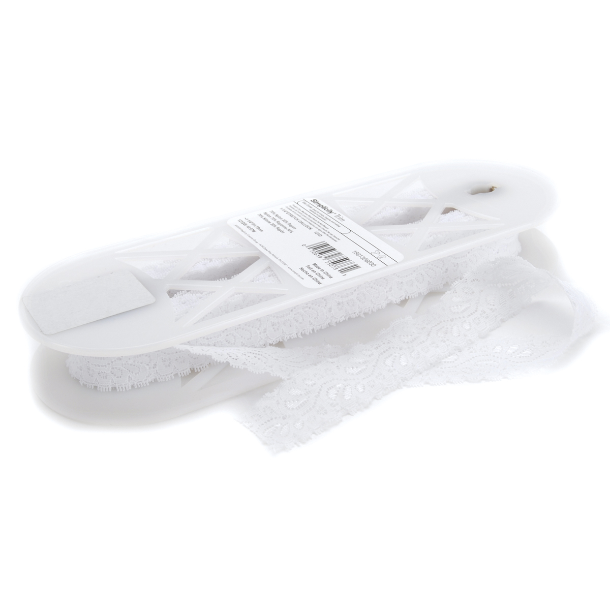 WRIGHTS-Stretch Galloon Lace. This package contains 12yd/10.97m of 70% nylon/30% Rayon 1-1/4in trim. Care: machine wash warm, do not bleach, drip dry. Imported.