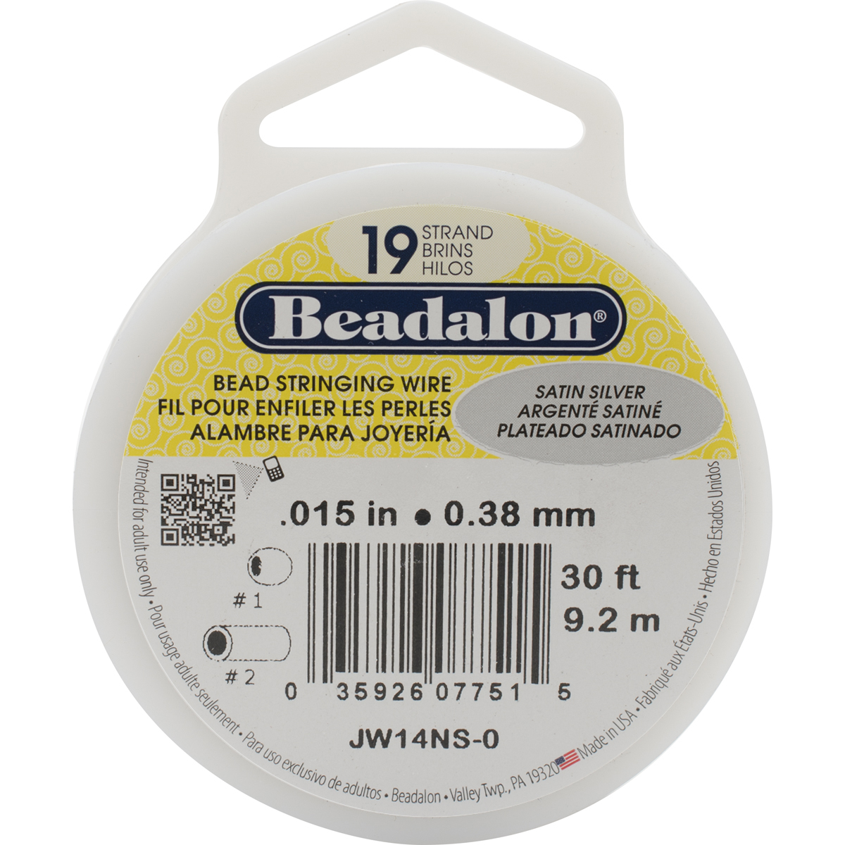 BEADALON-Stringing Wire. 19 strand measures .015 (.38mm) diameter on a 30 foot spool. Designer Series Satin. Now you can add the look of gold and silver to your designs without the cost of precious metal! Incorporate this metallic nylon coated and modern looking wire into your jewelry. The special coating is silky-soft so your designs will puddle in your hand more naturally and feel as if they were made on a single strand of silk. The wire underneath the coating is made of stainless steel for strength and durability. Use satin coated wire for stringing crystals, gemstones and glass beads for long lasting results.