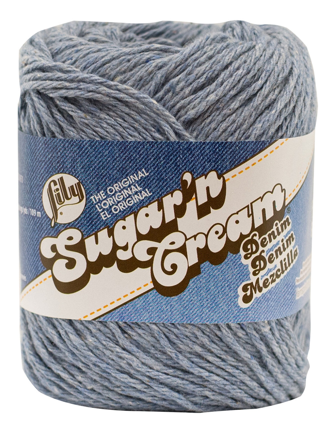 LILY-Sugar'N Cream Yarn: Solids. Natural, soft and absorbent cotton is ideal for knitting and crocheting kitchen and bath projects. Weight Category: 4, 100% cotton. 2-1/2oz/71g, 120yd/109.73m. Gauge: Knit: 20st x 26r = 4in/10cm on size 7/4.5mm needles, Crochet: 20st x 26r = 4in/10cm on size 7/4.5mm hook. Machine wash, tumble dry, do not bleach, do not iron, do not dry clean. Made in USA.