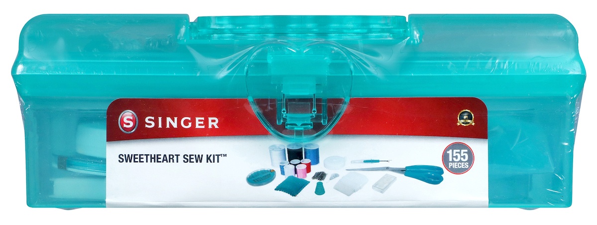 Singer-Sweetheart Sewing Kit. Keep all your essential sewing tools in one convenient case! This package contains thirty assorted hand needles, ten buttons, 100 straight pins, 8 inch sewing scissors, five mini thread spools (thirty-five yards each), three thread spools (150 yards each), one needle threader, one pin cushion, one seam ripper, one marking chalk, one 60 inch tape measure and one thimble in one 2-1/2x8-1/2x5-1/2 inch sewing case. Imported.